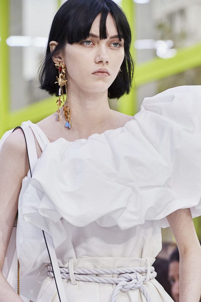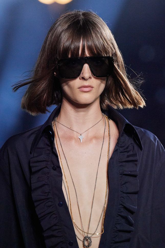La frange a longtemps attiré l'attention et l'amour de nombreuses filles, et cette saison nous a été offerte - même raccourcie, divisée ou étendue sur le côté, frangée lacérée, asymétrique et frisée. Une coiffure à la mode avec une frange peut changer radicalement votre apparence, et vous devez donc soigneusement choisir l'option qui vous convient. Pour un visage carré ou rond, il est important de privilégier une détonation asymétrique ou à plusieurs niveaux, qui ne doit pas être trop luxuriante. Une frange usinée en forme de frange s’adapte à la face triangulaire. Et les propriétaires du visage ovale peuvent choisir toutes les options. Une frange rectangulaire, luxuriante ou inclinée décoreront un visage rectangulaire. On considère les longues franges qui atteignent une longueur de la paupière supérieure ou inférieure. Les franges à la mode des années 50 sont également pertinentes cette saison.