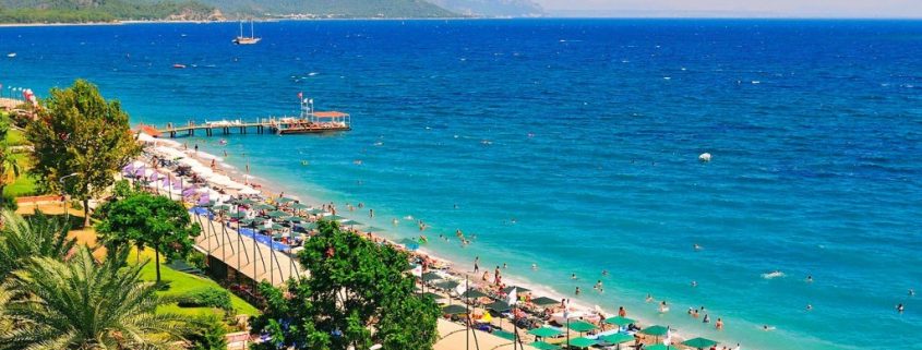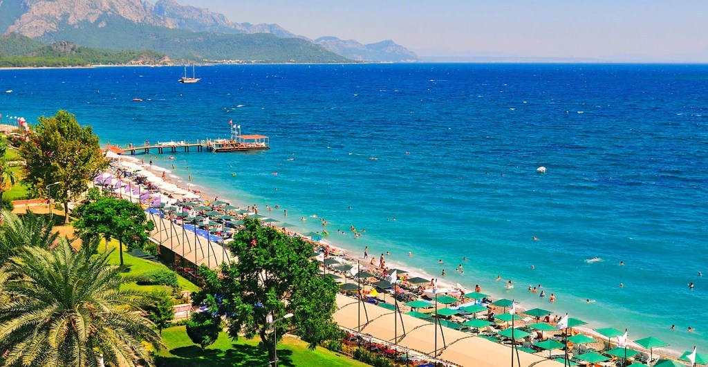 Toutes les plages de Kemer sont caillouteuses et très larges. Certains hôtels cinq étoiles fabriquent du sable en vrac, mais il y aura toujours des cailloux à l’entrée de la mer.