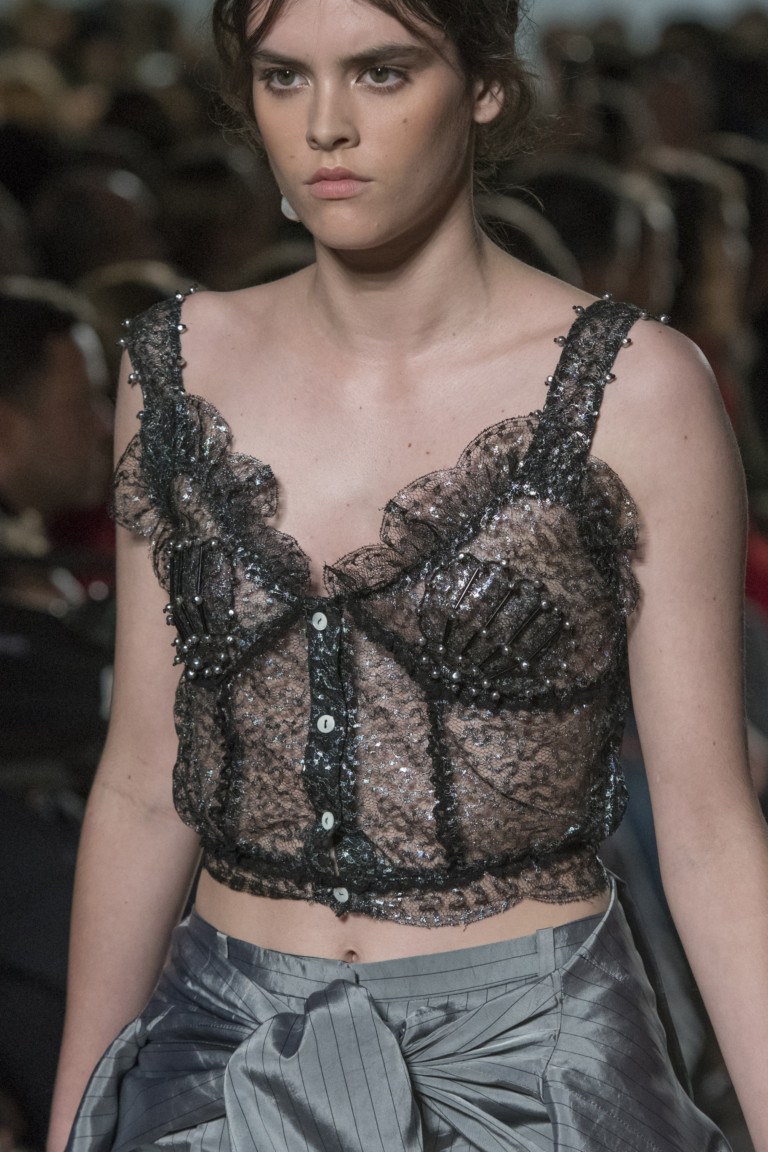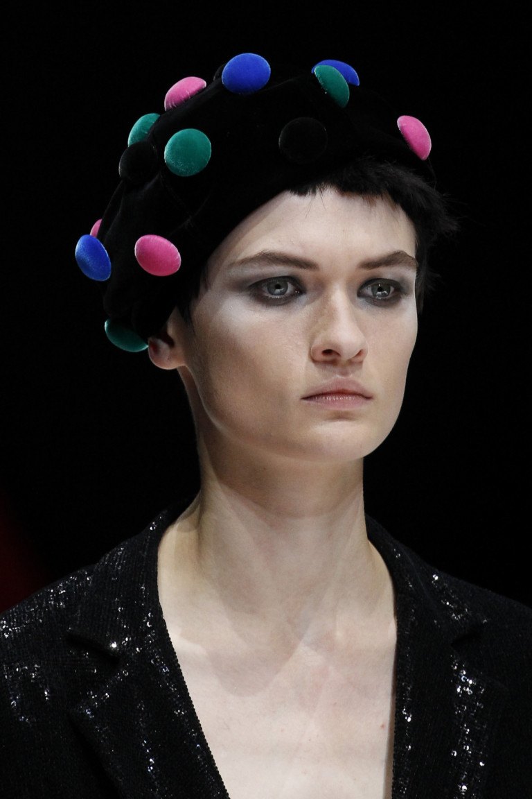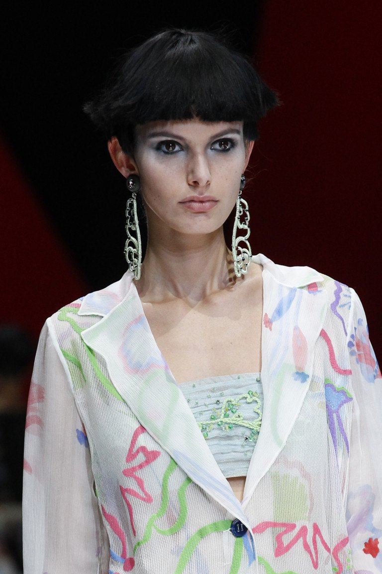 L'impressionnante collection estivale de Giorgio Armani se présente sous la forme d'images élégantes et rétro. La couleur noire de la collection est parfaitement complétée par toutes les couleurs de l'arc-en-ciel. Les corsets en osier, les décorations en forme de pois brillants, les chapeaux amusants et les bijoux originaux permettent aux femmes d’être ravissantes en été.