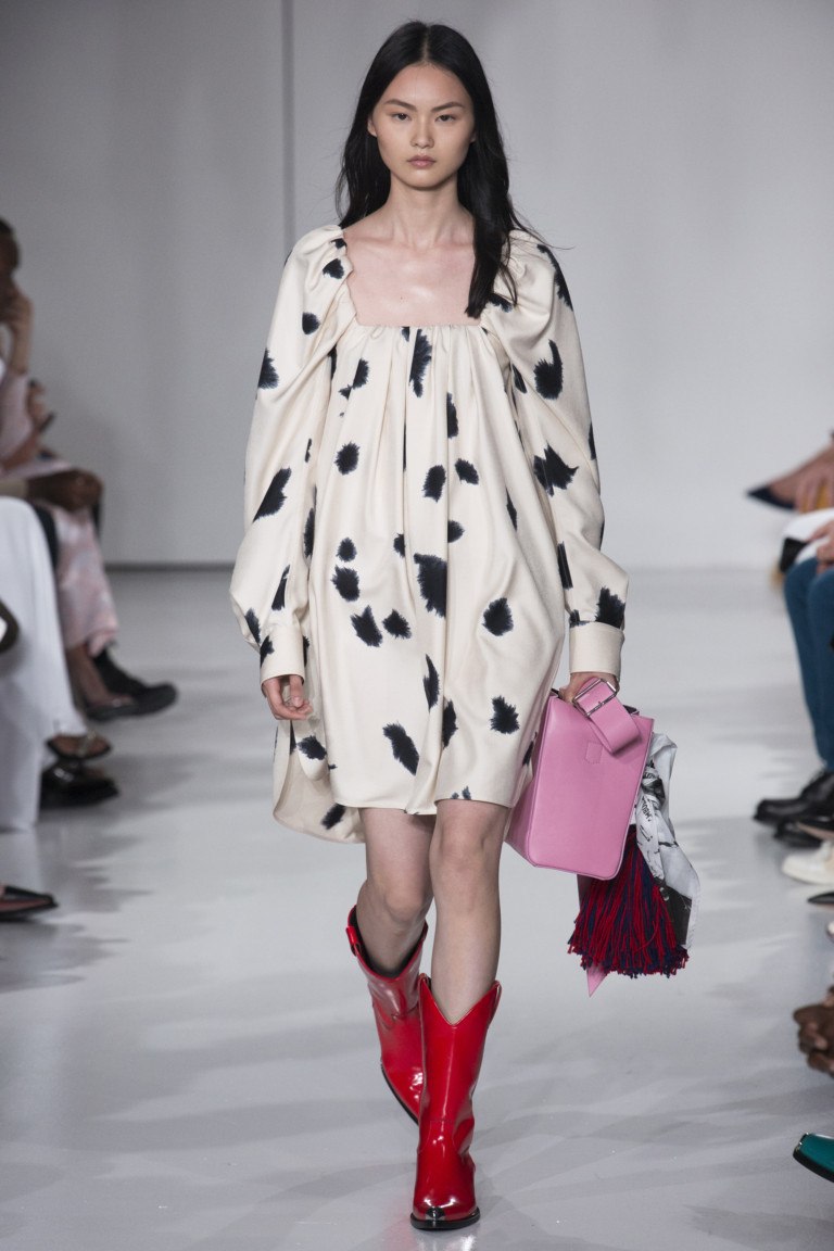 En 2026, la marque américaine Calvin Klein a proposé des modèles romantiques de produits féminins. Les concepteurs ont utilisé des teintes de rouge, de brun et de jaune saturées pour créer des images féminines délicates sur le podium. La collection Calvin Klein est dominée par les styles à coupe libre, ce qui explique pourquoi tous les produits d'été sont assez pratiques.
