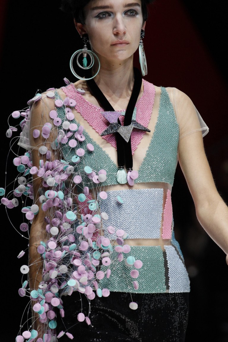 Avant la haute couture, Prada proposait une collection d'été inspirée de la géométrie originale, d'imprimés et d'une combinaison inhabituelle de tissus aux textures différentes. La collection Prada ne semble pas provocante à cause de la saturation des couleurs. Les impressions et broderies originales sur les modèles d'été, que les concepteurs ont placées aux endroits les plus imprévisibles du produit, créent des images rebelles et élégantes à la fois. Les sacs Prada se marient parfaitement avec les looks élégants. Non seulement des embrayages miniatures, mais également des modèles de sacs massifs permettent à une femme d'être à la mode. Et il n’est pas nécessaire de choisir un sac ton sur ton pour les vêtements, l’essentiel est de choisir en fonction de son style.