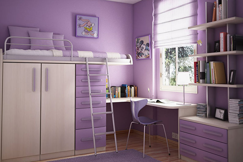 Lors du choix d'un style de design particulier, il est important d'écouter les souhaits de l'enfant. Après tout, la fille doit passer beaucoup de temps ici, elle devrait donc se sentir aussi à l'aise que possible. Mais gardez aussi à l'esprit que, à l'adolescence, l'humeur et les préférences d'un enfant peuvent changer de façon dramatique. Et si, à 12 ans, le bébé joue encore avec enthousiasme avec des poupées ou des jouets en peluche, au bout de 2-3 ans, il s’intéressera au sport ou à la musique.