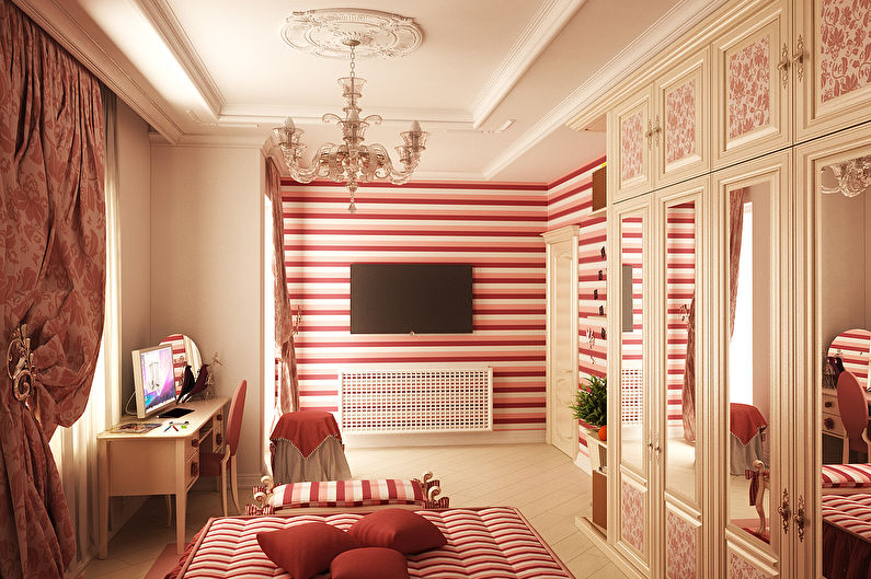 Cette direction reste toujours pertinente, car elle est universelle et sans prétention. Dans le style classique, vous pouvez équiper une pièce avec une fille de 12 ans et une fille de 19 ans. Si, au fil du temps, l’hôtesse souhaite changer quelque chose, quelques touches suffisent pour prendre de nouvelles notes ou changer la situation.