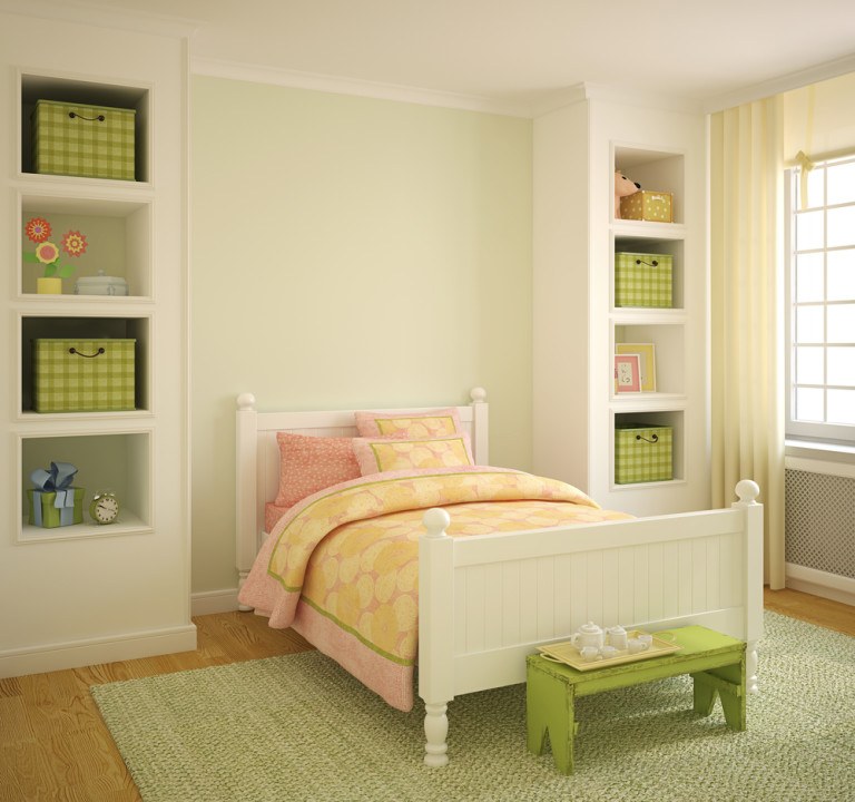 Étant donné que la jeune fille sera entourée d'affiches lumineuses, de jouets, etc., il vaut mieux que les murs soient peints en couleurs pastel. Parmi les nuances saturées, l’olive, le bleu azur, le jaune ou l’orange peuvent être pertinentes ici. Mais même si la fille insiste catégoriquement sur un dessin brillant, ne la refusez pas immédiatement. Après tout, dans quelle autre pièce de votre maison pouvez-vous donner vie aux expériences les plus audacieuses?