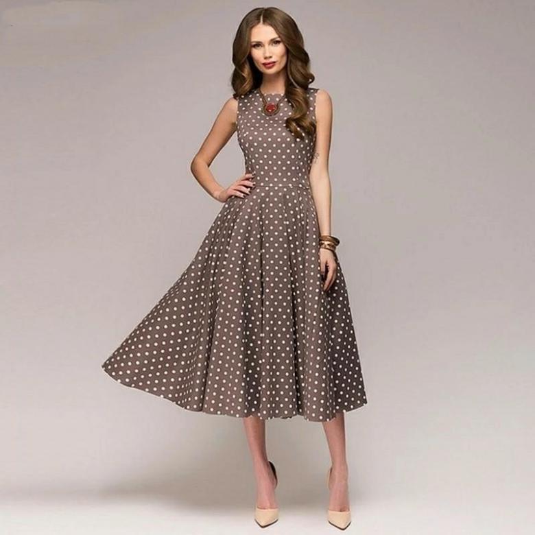 L'un des avantages d'une tenue brune avec une impression, c'est que la robe se déchire complètement et ajoute visuellement du volume là où elle manque. Par conséquent, choisissez une robe marron avec la disposition d'impression «correcte». La robe marron à pois est une tendance de la mode moderne. Mais les motifs floraux sont également en demande.
