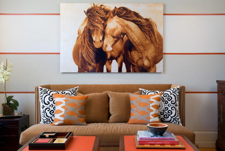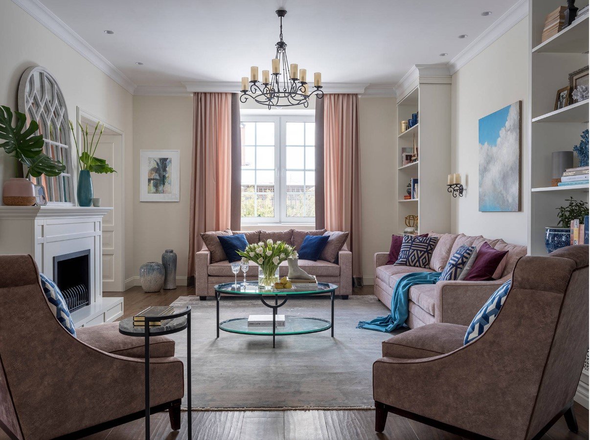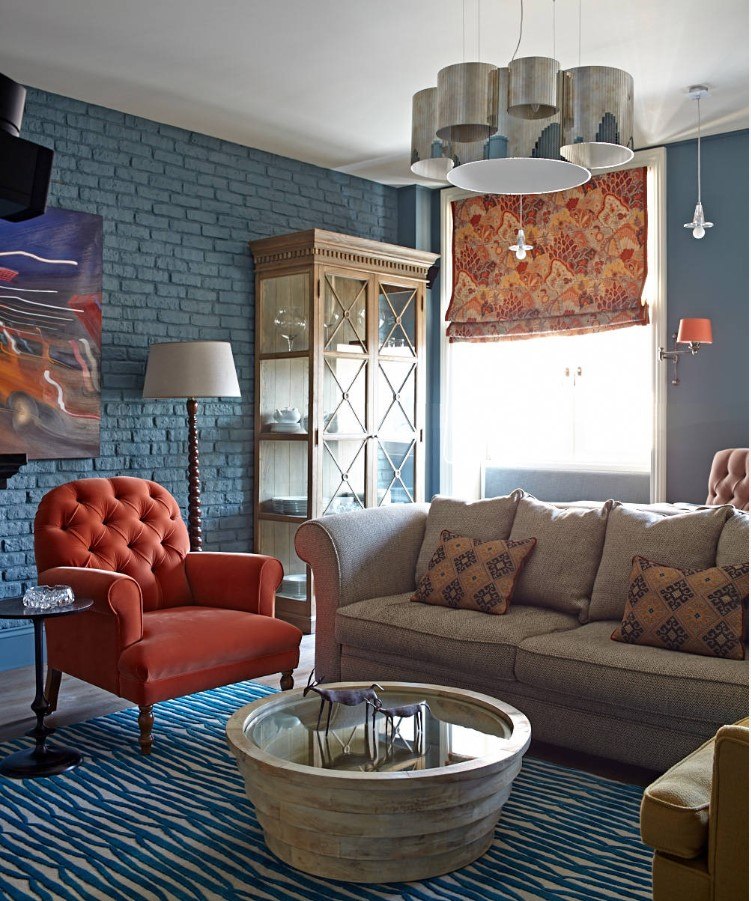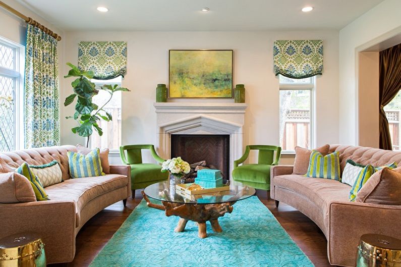 Cette combinaison est devenue classique et est souvent utilisée pour décorer des salons. L'une de ces couleurs est rendue plus lumineuse, plus accentuée et l'autre, au contraire, est rendue plus douce en arrière-plan. Cette combinaison de couleurs a un effet positif sur le système nerveux et peut être utilisée dans n’importe quel style.