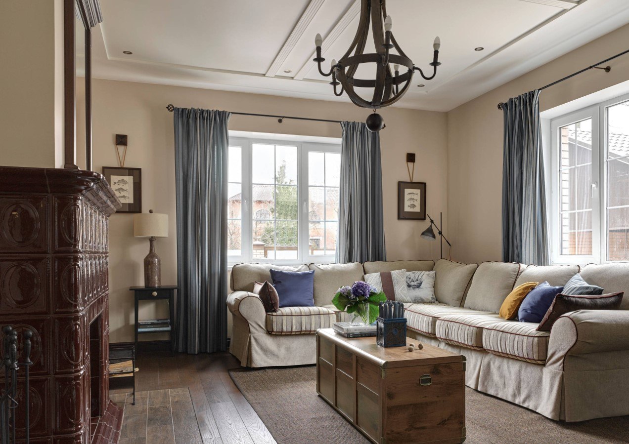 Dans la plus grande pièce de la maison, les teintes brunes peuvent être appliquées en quantité illimitée. L'essentiel est de choisir le bon ton, de déterminer sa combinaison avec divers éléments de la pièce. Sur un fond marron des murs, les meubles de la même teinte deviendront complètement invisibles.