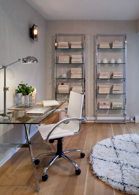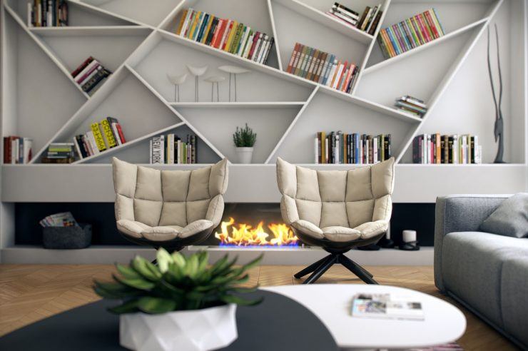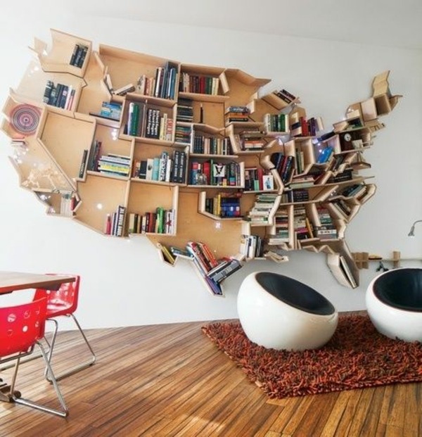 Grâce aux énormes variations de design, la bibliothèque peut non seulement s'intégrer dans n'importe quel intérieur, mais aussi démontrer l'individualité du propriétaire de la maison. Même si la pièce est décorée dans un style hi-tech ou moderne, il y a aussi une place pour une étagère en métal ou en verre. Mais dans ce cas, ils devraient être petits et simples.Les articles arrangés de manière chaotique ont fière allure.