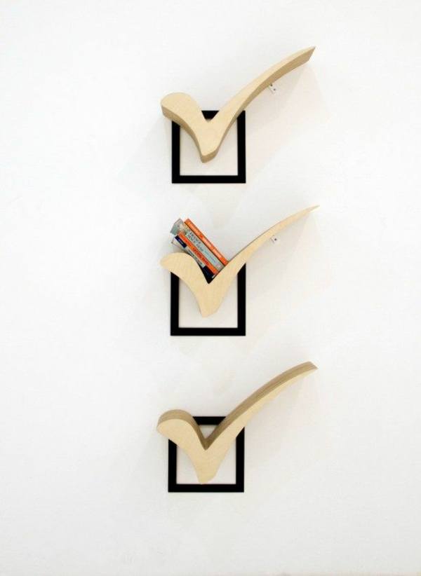 Si nous pouvions acheter plus tôt une bibliothèque de forme rectangulaire standard, leur choix est incroyable aujourd'hui. Dans le même temps, non seulement la forme peut être différente, mais également les types de fixation.
