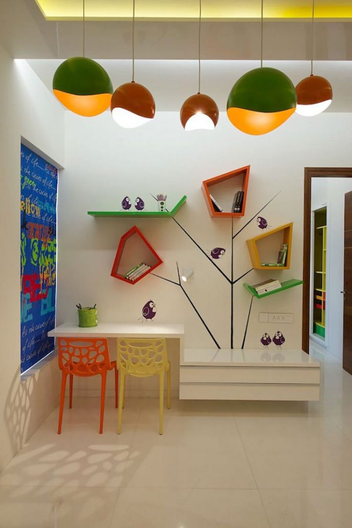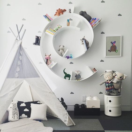 Des étagères au look inhabituel mais très impressionnant, dont le dessin ressemble à un nid d'abeille, répètent les contours d'un animal ou de lettres.