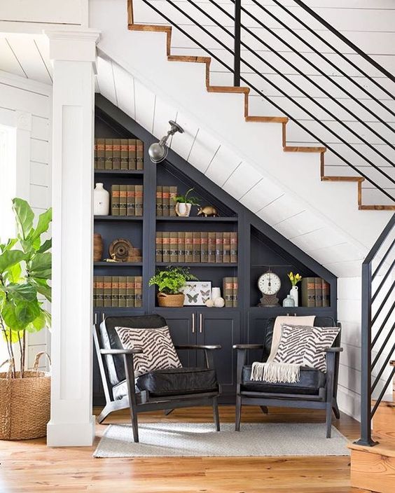 Aujourd'hui, une étagère pour livres peut être sélectionnée pour n'importe quelle pièce, quels que soient sa forme, sa taille et son style. Les propriétaires de maisons privées peuvent placer des éléments incorporés directement sous le palier. Un grenier peut devenir un dépositaire de livres merveilleux.