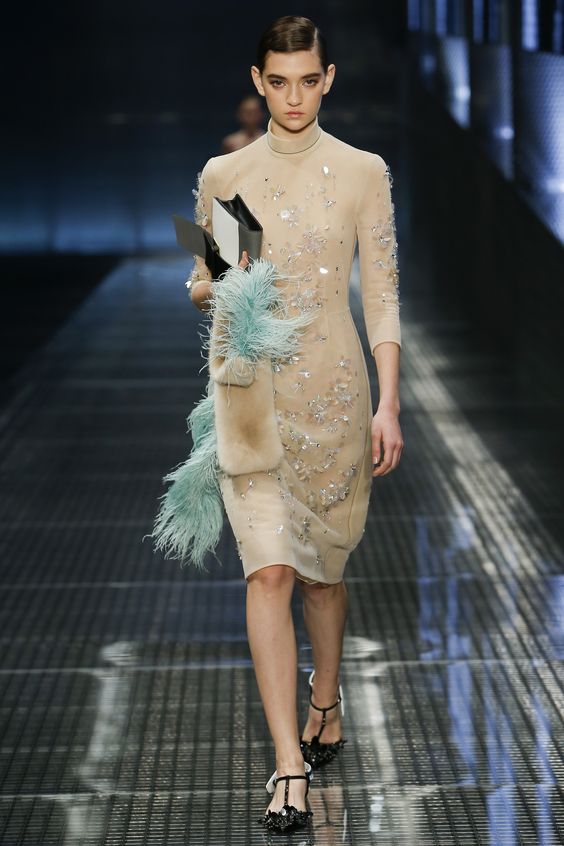 Il est difficile de trouver une fille qui n'aurait pas au moins une robe dans ce style. En automne-hiver, les créateurs de mode les offrent à tous, sans exception. En utilisant divers accessoires avec une robe fourreau, vous pouvez créer beaucoup d’images de toutes sortes. De plus, ce style est considéré comme pratique et polyvalent. Vous pouvez le porter, au bureau et à la fête. Sur le podium, on pouvait les voir de différentes longueurs et avec différentes options de décolleté.