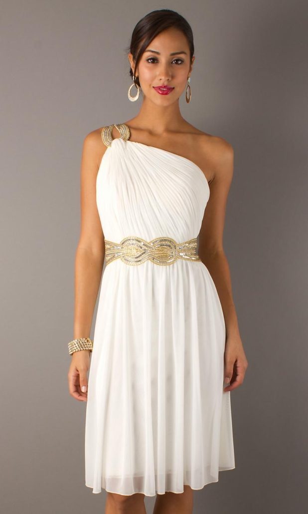 La nouveauté de 2026 sera les robes de cocktail à la grecque. Leur différence est que l'ourlet de la robe est court. Cette option est plus adaptée aux filles actives qui envisagent de danser toute la nuit.