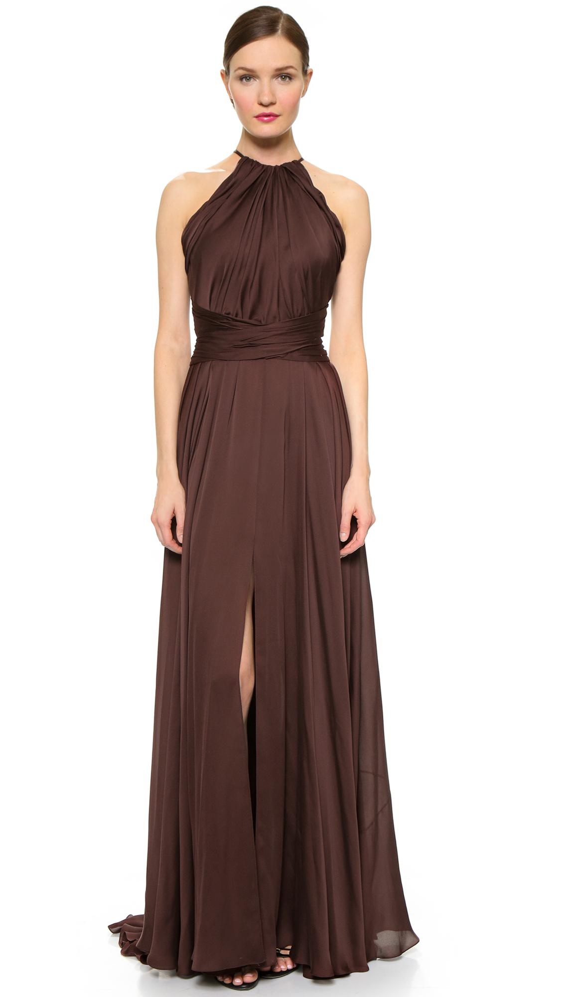 Les robes en satin de ce style ont l’air étonnamment et délicatement. Les couleurs à la mode seront: rose, pêche, violet, gris et café.