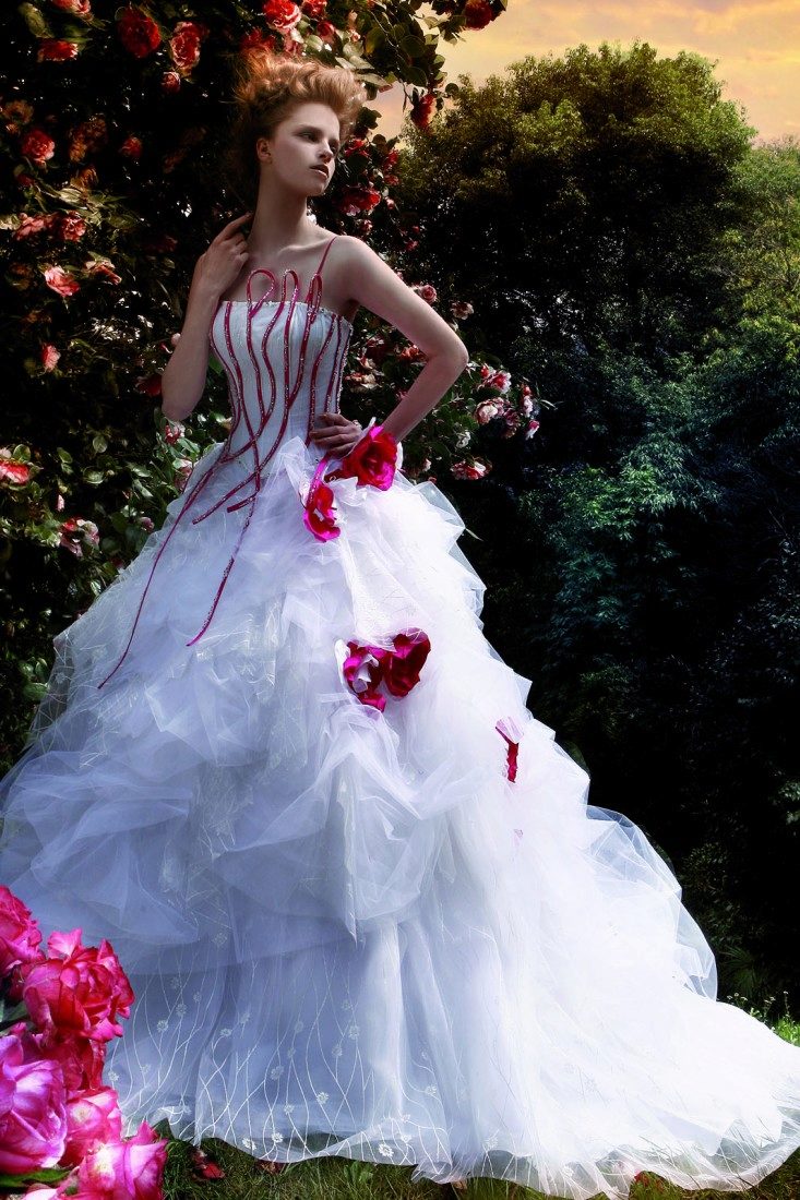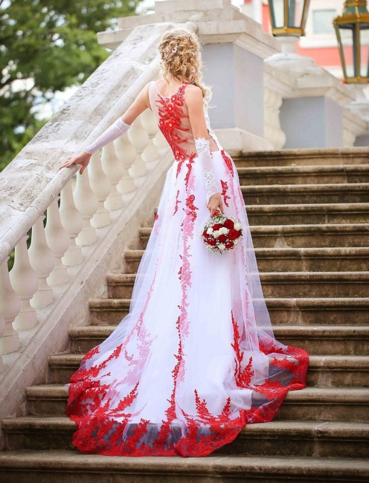 Robe de mariée: une superbe combinaison de blanc et de rouge