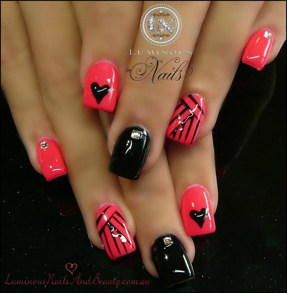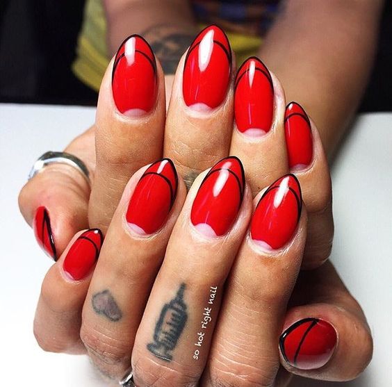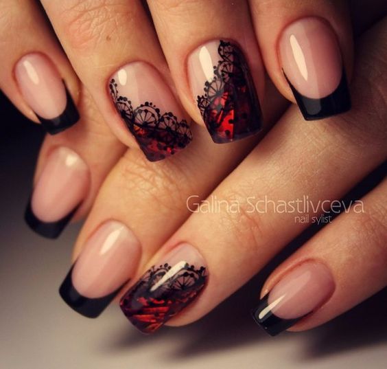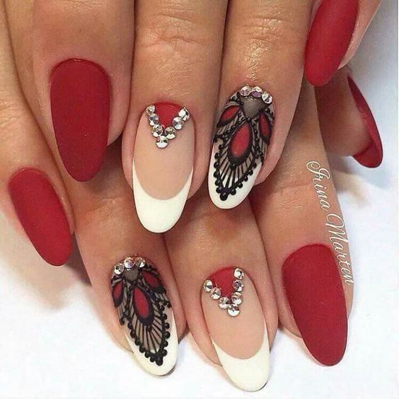 Cette combinaison convient aux filles capricieuses et confiantes. Dans ce cas, une manucure dans les tons noir et rouge conviendra non seulement lors de la célébration, mais également lors d'une réunion de travail. Si vous ajoutez une couleur blanche à la manucure rouge-noir, cela donnera une touche de romantisme.