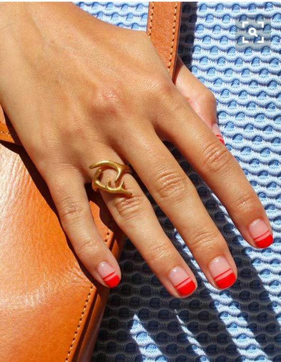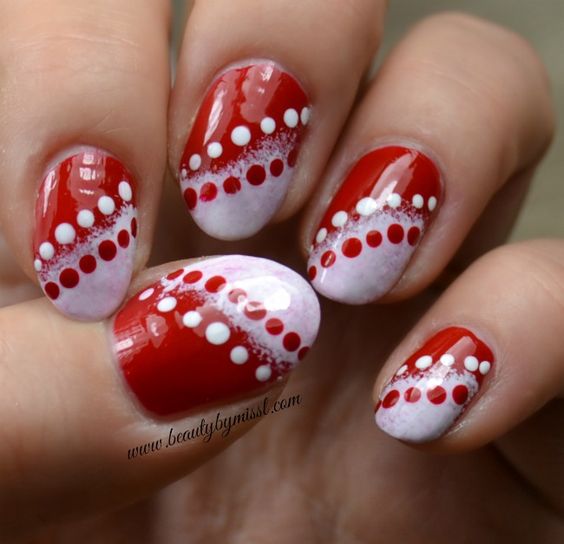 Cette tendance dans la conception des ongles est maintenant au sommet de la popularité.Dans ce cas, la couleur rouge peut être prise comme base ou utilisée pour peindre les puits.