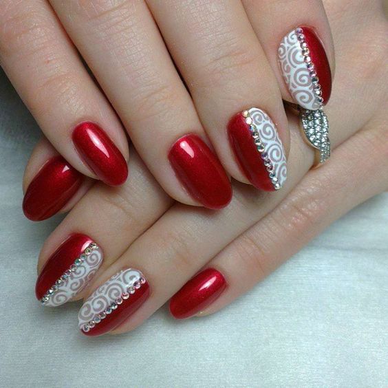 La base rouge est considérée comme idéale pour lui appliquer divers motifs. Même si vous n’avez pas le talent pour dessiner, vous pouvez utiliser l’estampage ou des autocollants spéciaux. Les fleurs sont très belles sur un fond rouge.