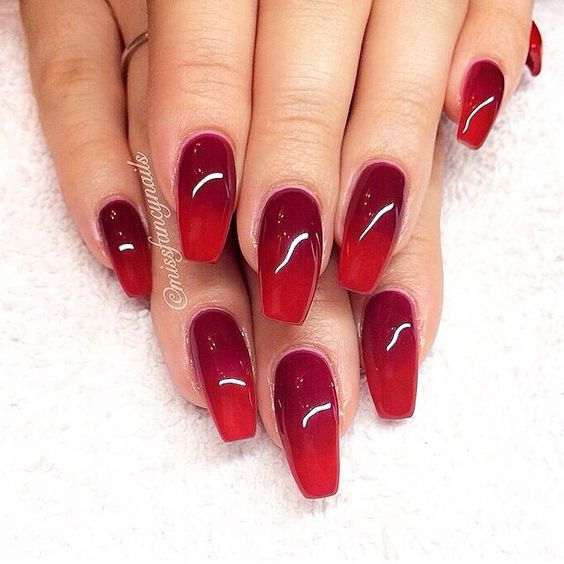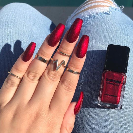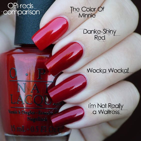 Il existe une large palette de couleurs de vernis rouge: du brillant au néon en passant par le noir saturé. Choisir la bonne teinte ne devrait pas être seulement dû à l’ambiance, mais aussi à la situation. Si vos vêtements sont décorés de pierres ou d’étincelles, vous devez choisir un décor de clous de forme et de couleur appropriées.