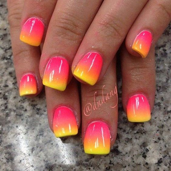 Ombre Manicure, ou comme on l'appelle aussi dégradé, a déjà réussi à tomber amoureux de nombreuses filles. Il est basé sur une transition en douceur entre les couleurs. La longueur des ongles dans ce cas n’est pas fondamentale, mais elle a tout de même l’air plus agréable pour les plus courtes.
