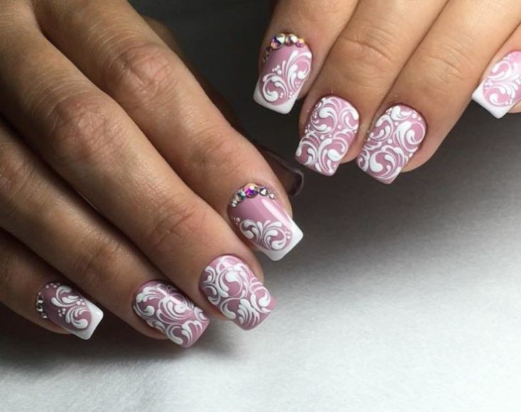 Vous avez sûrement remarqué que le même design est complètement différent en fonction de la longueur des ongles. Cela n’a rien d’étonnant, par conséquent, dans les salons, les assistants aident toujours à choisir le modèle qui convient le mieux. Quant au motif de dentelle, il est parfait même pour les ongles courts. Cette option sera une excellente solution pour la vie quotidienne.