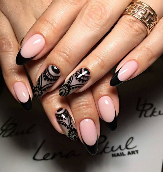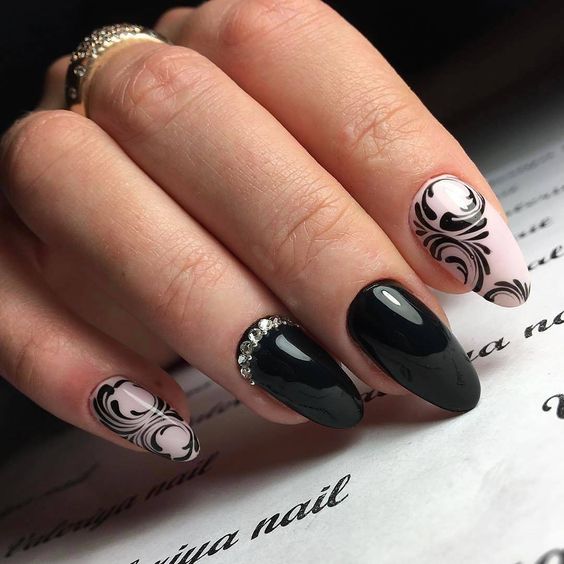 Avant de procéder à la conception, assurez-vous de traiter la cuticule et de donner aux ongles la même forme. Seulement dans ce cas, le résultat sera vraiment attractif. Après cela, appliquez du vernis noir et attendez qu'il sèche.