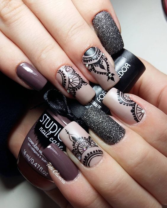 - vernis à ongles noirs et beiges;
