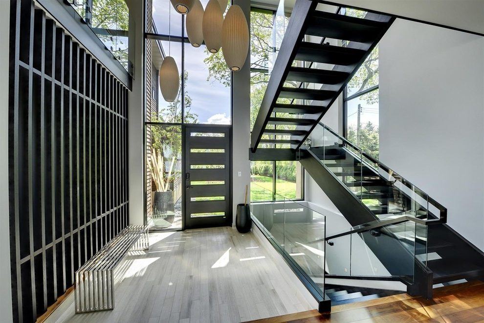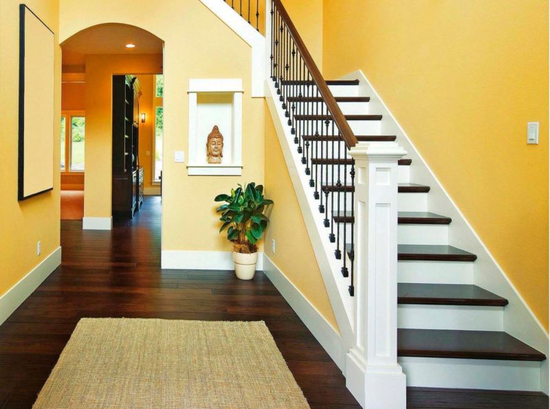 En fonction de la hauteur des plafonds, de la taille de la pièce et de la disposition, l'installation des escaliers dépend. En tout cas, il s’agit d’un processus individuel. Dans les bâtiments spacieux, le hall d'entrée est l'endroit le plus populaire pour installer des escaliers au deuxième étage. Cela ouvre la possibilité, sans se promener dans la maison, d'entrer dans n'importe quelle pièce.