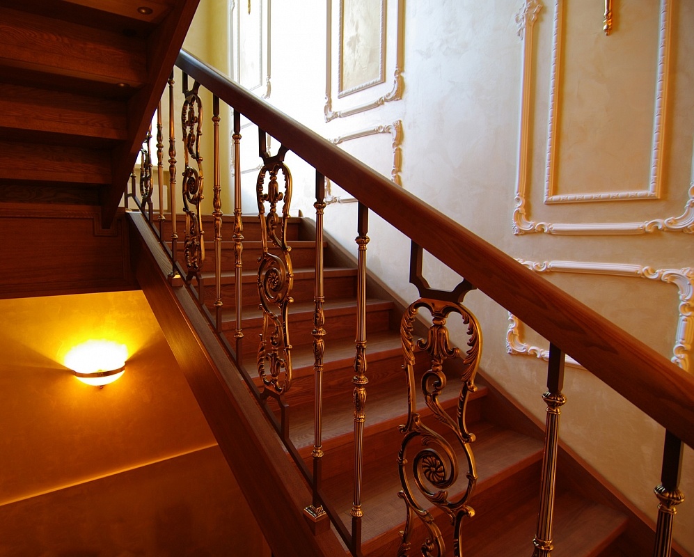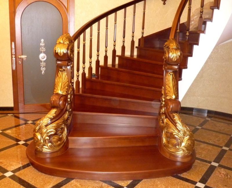 Dans le style classique, il est souhaitable que les matériaux suivants soient utilisés - la pierre décorative, le métal et le bois, ce dernier étant en plomb. Un escalier dans ce style est énorme, il est donc construit dans de grandes salles.