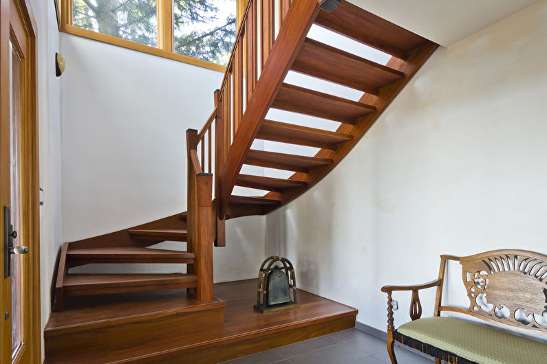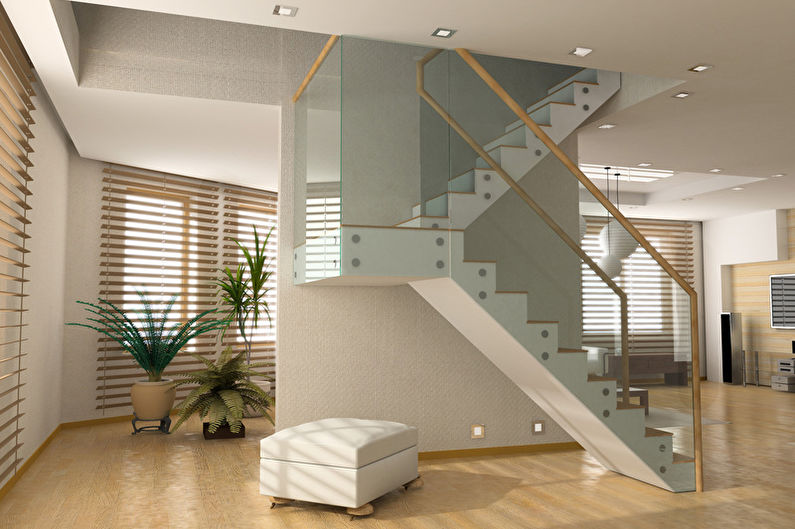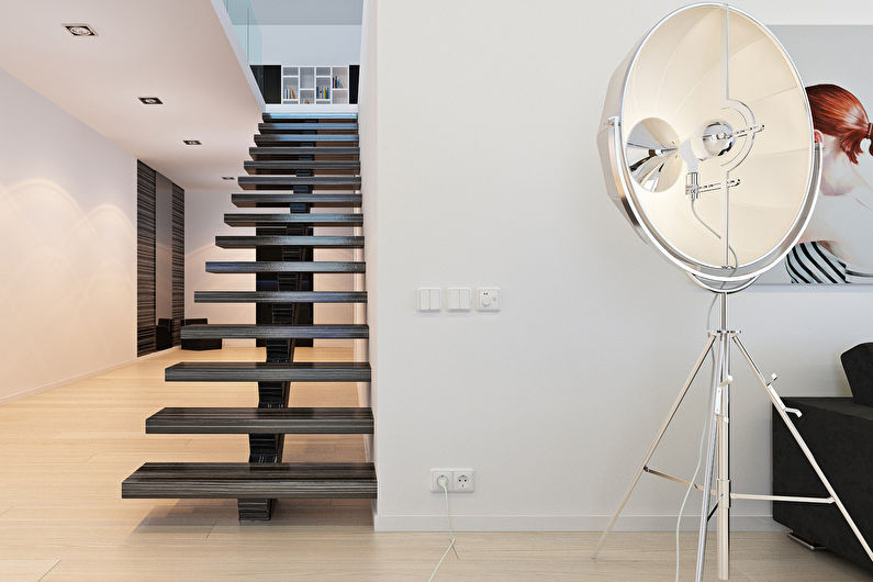 Il sera nécessaire de déterminer le type d'étapes. À l'intérieur classique, une version plus massive avec des contremarches s'intégrera parfaitement dans une maison moderne - une option sans eux, qui est légère.