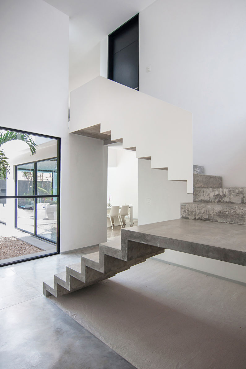 L'escalier en béton ne rentre pas dans le style classique, car il n'a ni sophistication ni légèreté. Mais une telle échelle donnera un sentiment d'intégrité et de solidité.