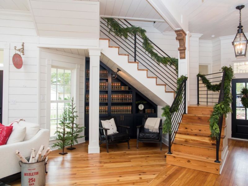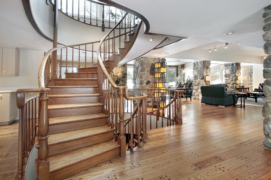 Dans ce cas, la préférence est donnée aux surfaces lisses, aux lignes, aux formes géométriques. Le plus important, c’est que l’escalier à l’intérieur ait l’air favorable et que le type de design ne soit pas important.