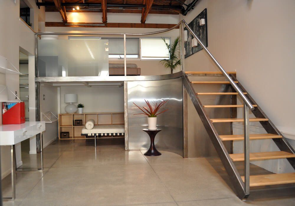 Les escaliers en béton interagissent harmonieusement avec le style du loft, ce qui souligne encore le caractère industriel. D'autres bases dans ce style conviendront également.