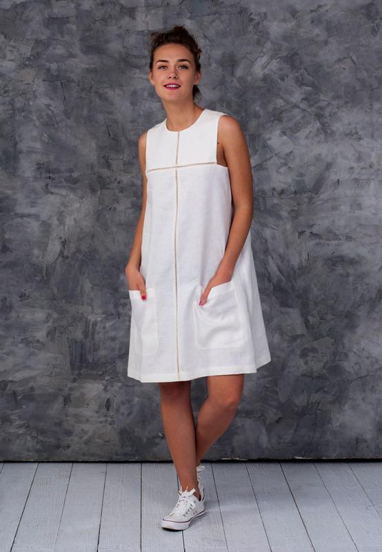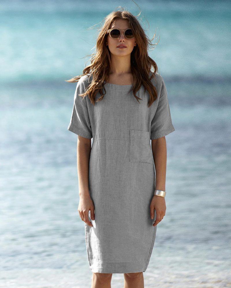 Une robe blanche en lin coupe droite a l'air intéressant. En chaussette, ces modèles sont très polyvalents et ont fière allure dans la vie quotidienne. Dans une robe en lin, vous pouvez aisément vous promener, rencontrer des invités ou aller au café. Certaines femmes portent des jambières sous une robe courte en lin de coupe droite, ce qui rend les mouvements plus libres et détendus.