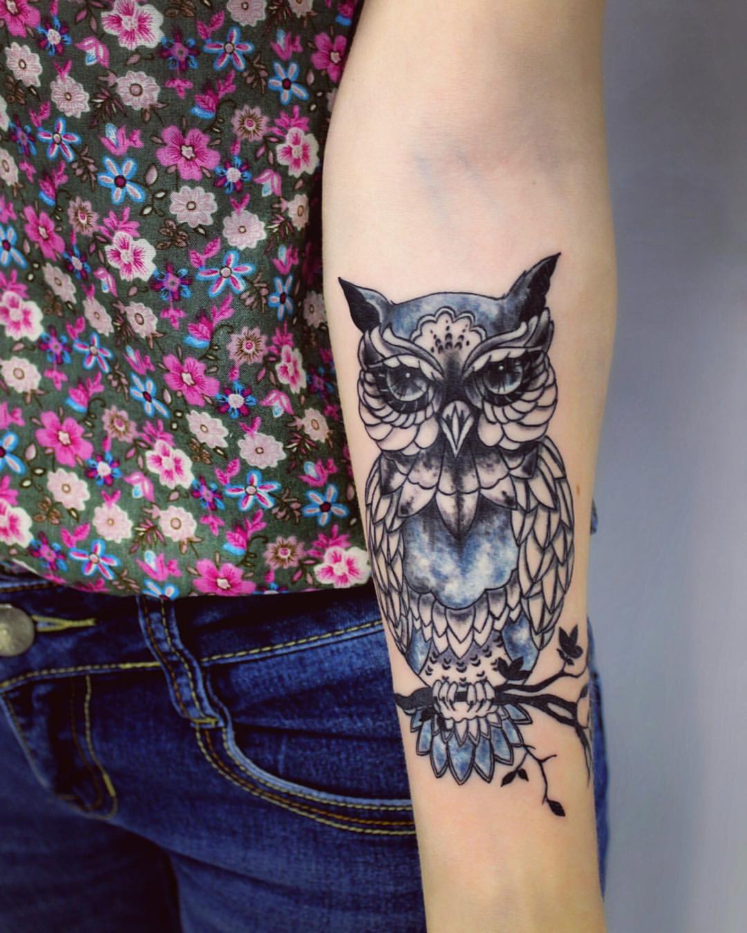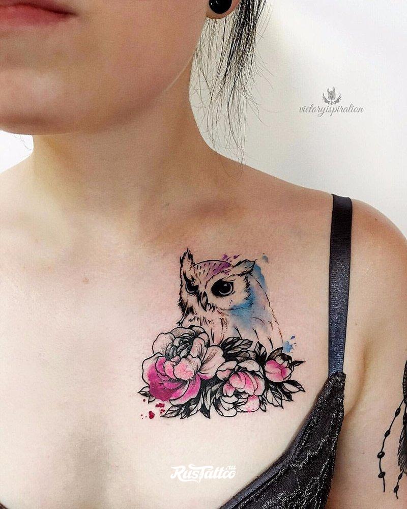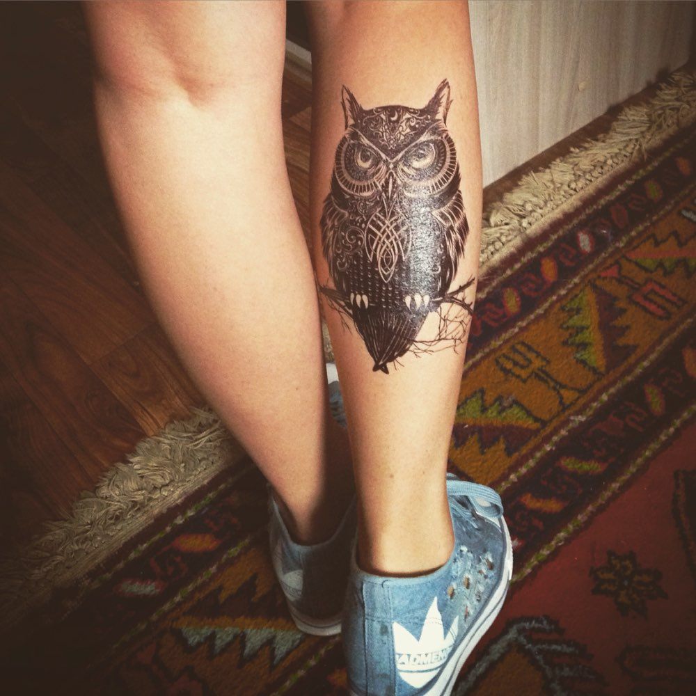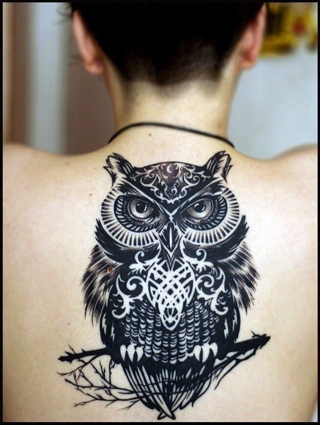 Il y a quelques centaines d'années, un hibou était une force sombre et sinistre associée à la magie et à l'autre monde. Aujourd'hui, l'opinion à ce sujet a changé.Les gens croient que l'image d'un hibou signifie solitude, intelligence développée et calme. Nous concluons que ce tatouage est idéal pour les personnes pacifiées et sages qui ne sont pas pressées de prendre des décisions téméraires. Un dessin avec un hibou peut être placé sur n'importe quelle partie du corps, il n'y a pas de canons à cet égard. Mais souvent, il est appliqué sur les mains ou les pieds.