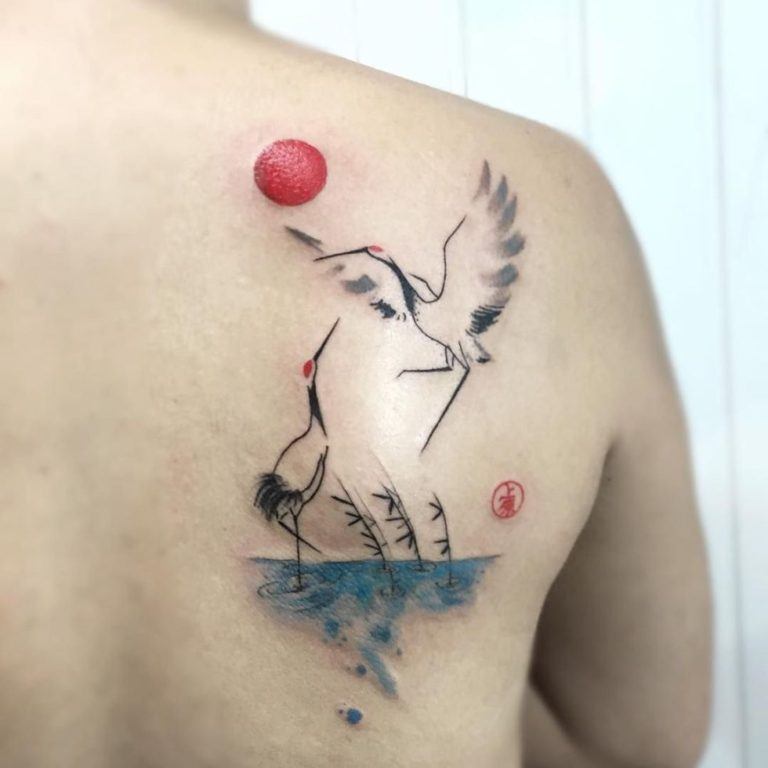 Tatouage de cigogne: de belles options sur la photo
