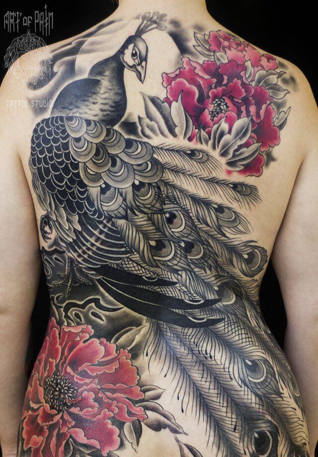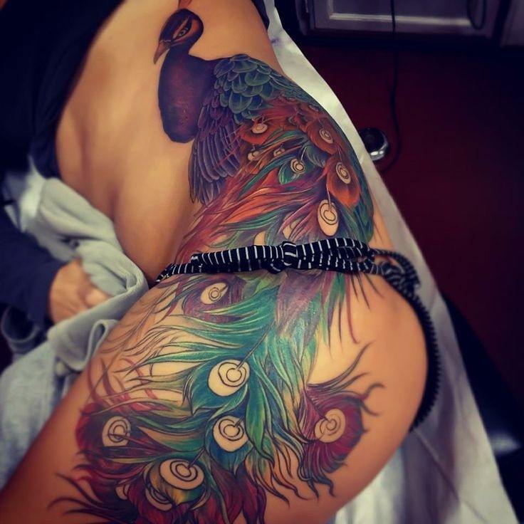 Noble, les beaux oiseaux sont toujours à l'honneur, causant l'étonnement. Les experts en peinture corporelle recommandent vivement de faire des tatouages de grande taille en utilisant des couleurs vives, afin qu'ils aient toujours l'air volumineux et luxueux. Qu'est-ce que le paon signifie? Un paon est l'immortalité, la longévité, la richesse. Une telle image convient aux filles confiantes qui ne craignent pas les difficultés de la vie et sont prêtes à atteindre leur objectif, quoi qu’il en soit.
