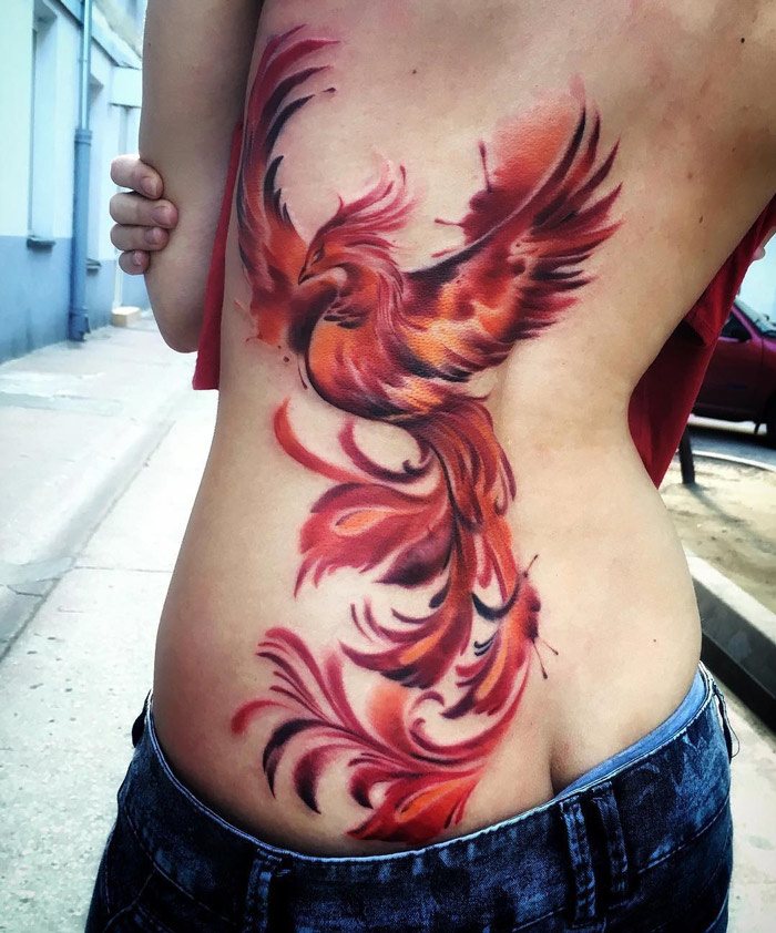 L'oiseau de feu fabuleux sert de talisman contre le mauvais et le négatif. Il est choisi comme tatouage pour résister aux épreuves de la vie, quand il lui semble que les événements qui se déroulent en lui sont injustes, pour surmonter les insurmontables «barrières du karma», pour renforcer l’esprit humain. Souvent, les deux sexes préfèrent cet oiseau. Il est identifié avec le mythique oiseau phénix, car il est logique de renaître de ses cendres et mis à jour. En règle générale, un tel tatouage est choisi par des personnes sages qui comprennent clairement que tout dans cette vie est cyclique, il existe un cycle de «vie» et de «mort».