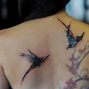 Auparavant, l'hirondelle symbolisait l'amulette, protection à l'abri de la maison, particulièrement appréciée des marins. La modernité a effacé ces frontières et élargi le sens de ce tatouage. Une hirondelle, c'est le bonheur dans la maison, la liberté, la fiabilité, la jeunesse, une bonne fortune. Il est recommandé de développer votre propre dessin pour mettre en évidence votre "hirondelle" sur le fond général du même type de tatouage. Alors seulement, vous saurez que votre dessin signifiera exactement ce que vous vouliez y voir.