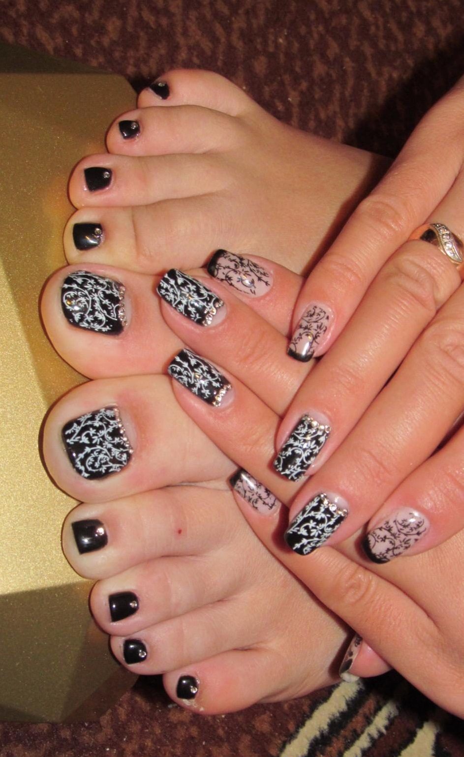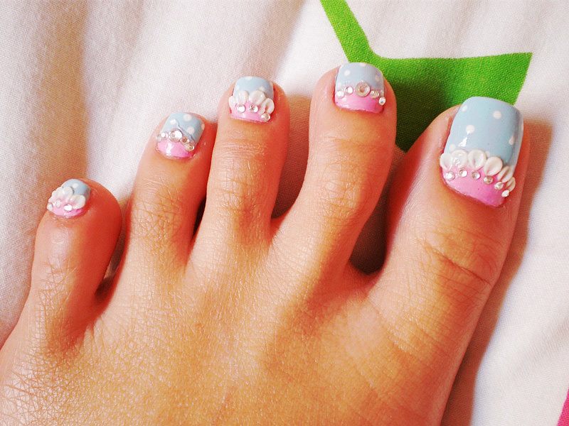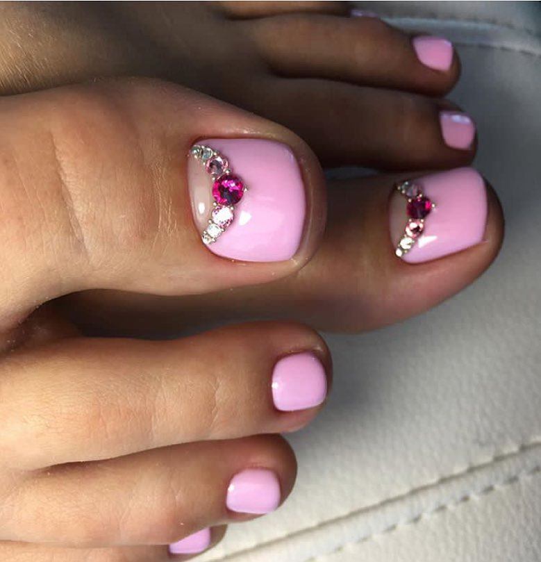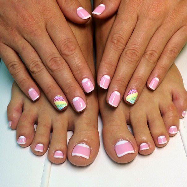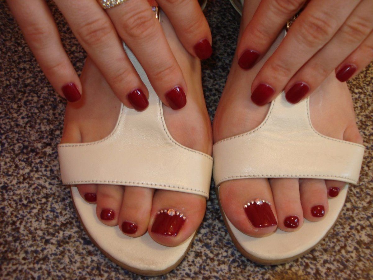 Si vous constatez que les pochoirs sont terminés mais que vous souhaitez réellement effectuer une pédicure lunaire, nous vous expliquerons comment gérer cette situation. Vous aurez besoin d'un peu de patience et de connaissances en technologie. Pour commencer, prenez un vernis décoratif et appliquez-le le long du contour de la base de l'ongle (lunula). La ligne doit être plate et proportionnée. Ce n'est pas obtenu de tout le monde la première fois, mais il n'est pas nécessaire d'être contrarié. Essuyez le contour mal dessiné du vernis décoratif et dessinez-le à nouveau. Vous devez vous efforcer d’obtenir la forme du «croissant», dessinez-le aussi uniformément que possible, un crayon à lèvres vous aidera dans cette affaire. Tracez une ligne en gras avec un crayon, effacez l'excès avec un coton-tige (trempé dans du démaquillant). Les excès de vernis décoratif sur la lunule peuvent être éliminés à l'aide d'un dissolvant pour vernis à ongles. Enduisez le reste de la plaque à ongles avec du vernis, vous pouvez immédiatement utiliser deux couches de vernis. En utilisant un vernis de couleur différente, vous pouvez corriger les irrégularités de la dernière couche de vernis. Si vous souhaitez embellir vos ongles, utilisez des strass, des petits cailloux, des dessins, etc. Il n'y a pas d'ordre pour placer des strass et des cailloux, ils peuvent être situés au hasard sur toute la surface de l'ongle ou seulement sur une partie de la base. A la fin, appliquez une couche de finition.