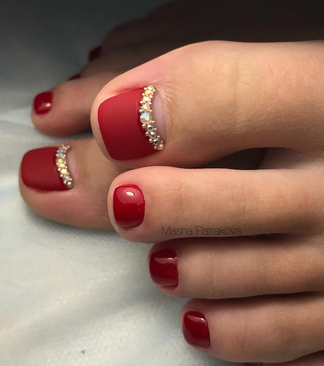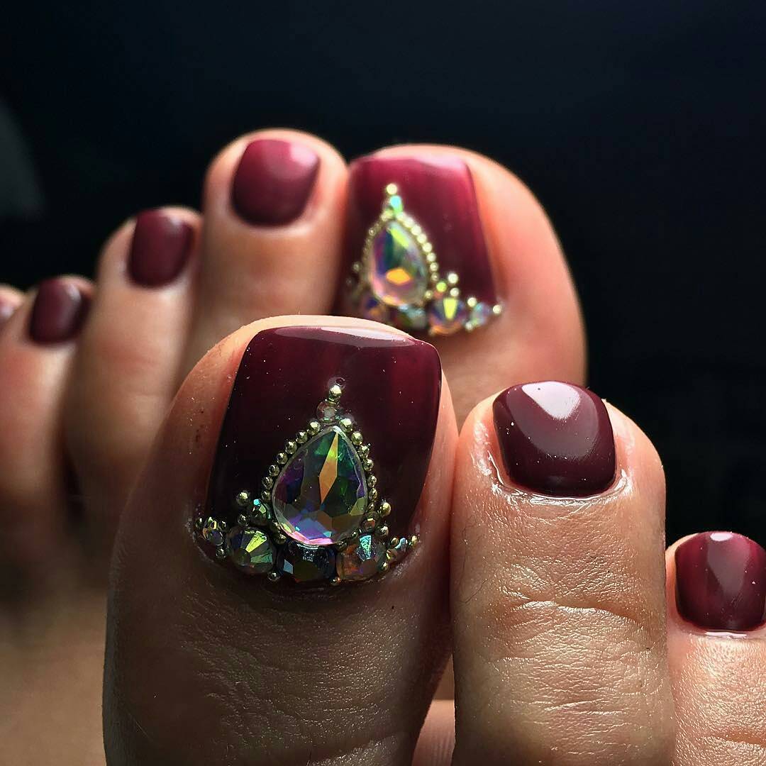 Pédicure est un exercice complètement ennuyeux pour trahir votre zeste en pédicure de lune, utilisez les idées de spécialistes du nail art. Les nuances contrastées sont notre tout. Oubliez une fois pour toutes les couleurs pastel limitées. Vous pouvez maintenant utiliser des nuances dorées, noires, rouges et bleues. Une lunule argentée et des ongles mats de tons sombres sont très beaux. Ne vous habituez pas à la lune sous la forme d'un mois, vous pouvez lui donner n'importe quelle forme, utilisez votre imagination à 100%. La conception lunaire peut être faite sur tous les ongles des jambes et seulement sur un des doigts. Une solution très réussie serait une idée avec une combinaison de pédicure lunaire et française. Pour obtenir un résultat satisfaisant, vous devez concevoir la pointe de l'ongle et sa base dans une couleur différente.