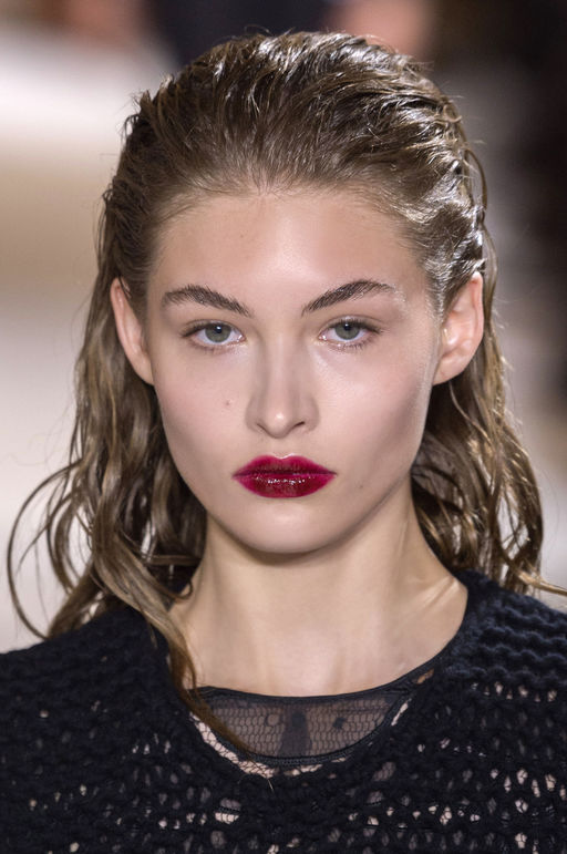 En outre, les lèvres brillantes et juteuses de couleur rouge ou bourgogne sont une autre tendance de la saison automne-hiver. L'essentiel est de choisir l'ombre la plus appropriée. Sinon, le maquillage des lèvres ne sera pas très beau. Nous vous recommandons également de vous concentrer sur les yeux ou les lèvres. La combinaison semble souvent trop intense. Dans ce cas, les plus pertinentes sont les lèvres brillantes, ainsi que les peaux sourdes aux teintes naturelles.