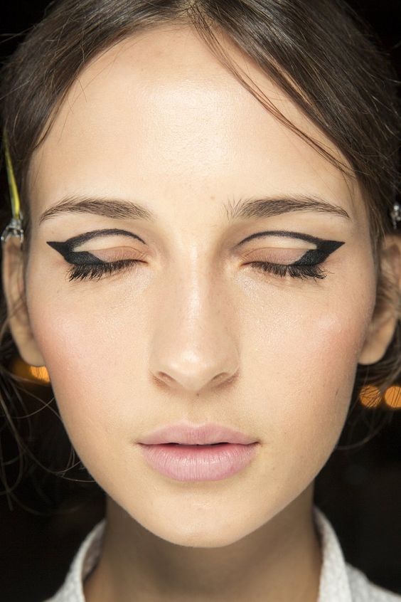 Probablement toutes les fashionistas dans un sac cosmétique ont un eye-liner dans une teinte noire. Il est temps de commencer à l'utiliser d'une nouvelle manière. Flèches inhabituelles, lignes graphiques - tout cela est particulièrement vrai en 2026. Les maquilleurs affirment que plus ils sont complexes et inhabituels, mieux ce sera. Par conséquent, lors de défilés de mode, on pouvait voir des flèches avec des triangles. D'accord, ça a l'air très original.