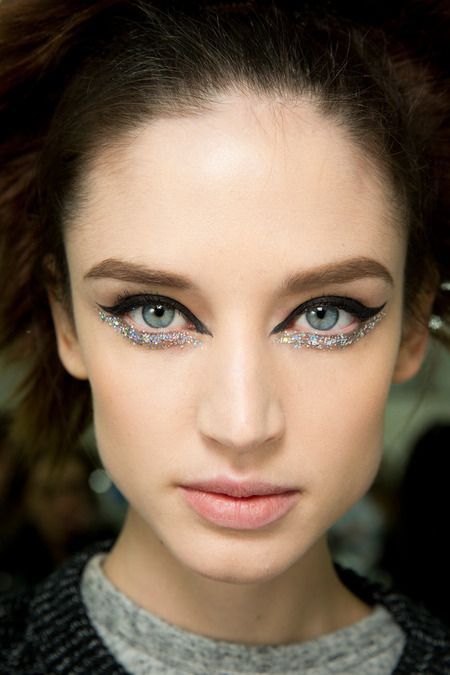 Comme mentionné ci-dessus, les nus s'estompent progressivement dans le fond. Remplacé par des tendances plus brillantes et plus inhabituelles. Par exemple, les paillettes et les strass seront tout simplement au sommet de leur popularité durant la saison automne-hiver. En outre, les maquilleurs prétendent qu'un tel éclat est encore plus important que le mascara dans le maquillage des yeux. Par conséquent, si vous n’avez toujours pas de tels fonds dans un sac à cosmétiques, le moment est venu d’aller à la recherche de votre option idéale.