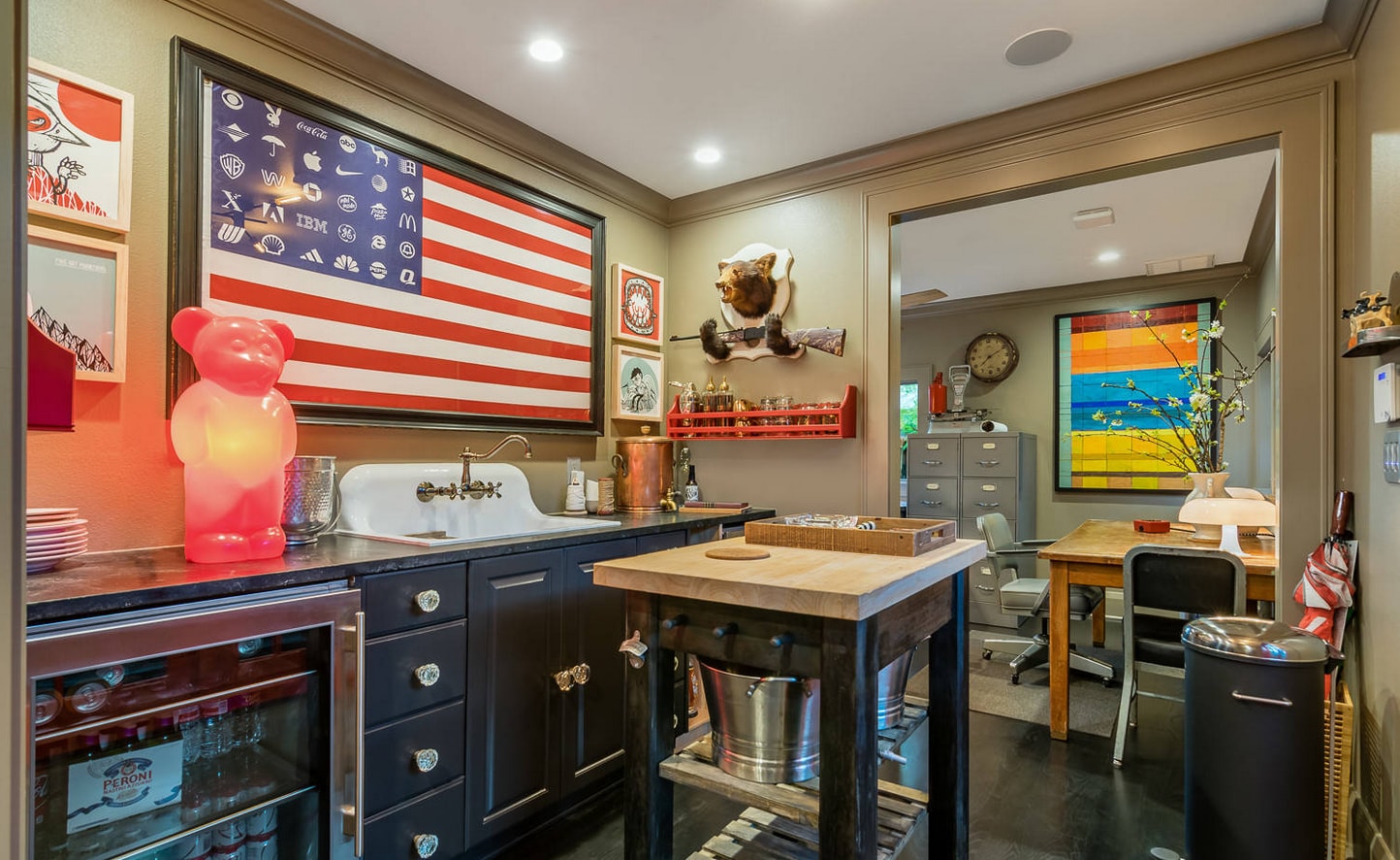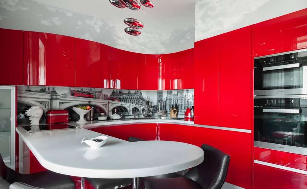 Dans de telles niches, vous pouvez également cacher un réfrigérateur ou créer un comptoir de bar inhabituel. Un ensemble pour une telle cuisine non standard devra être fabriqué sur commande.