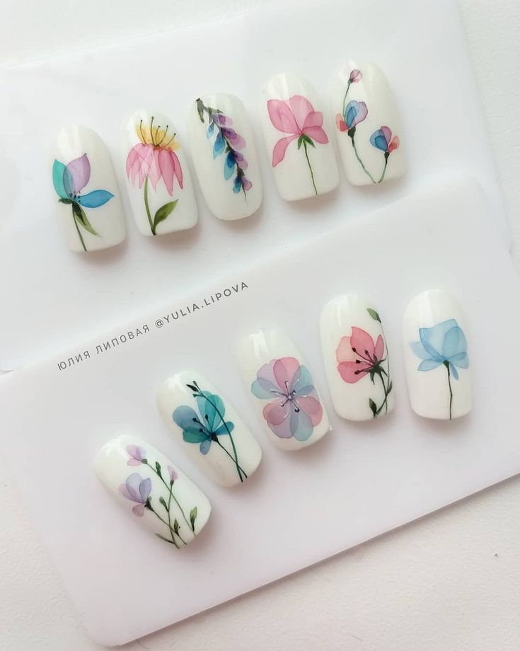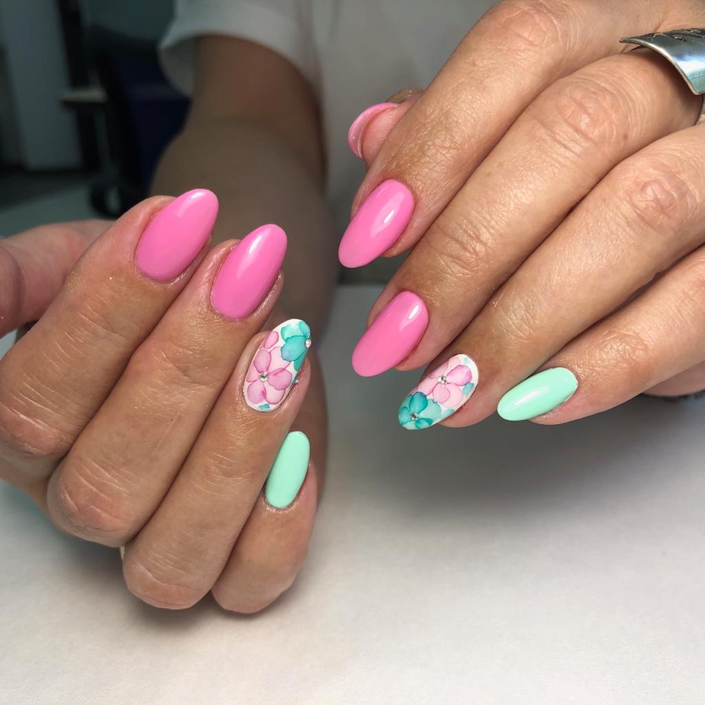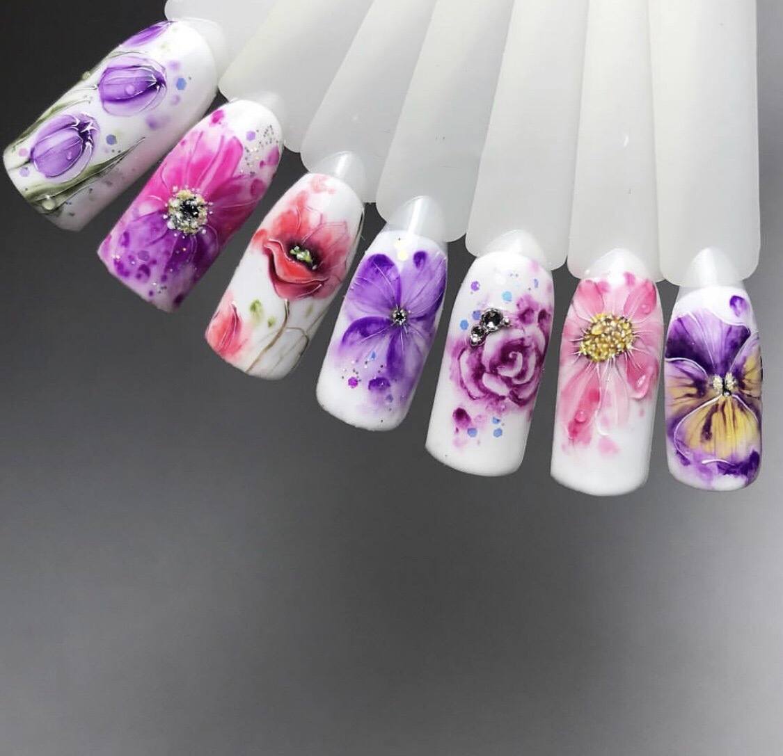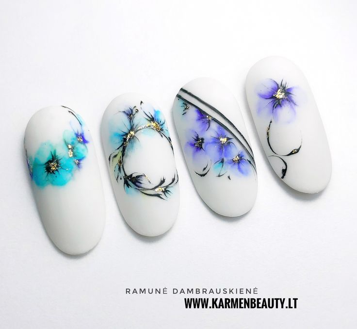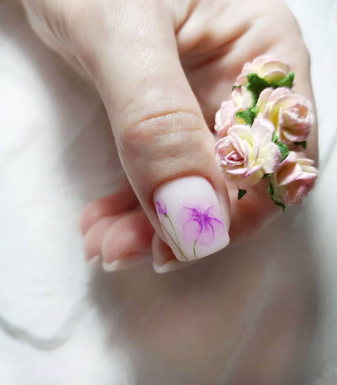 - Manucure aquarelle avec des fleurs.