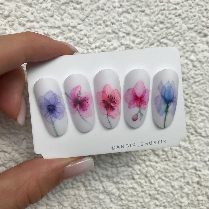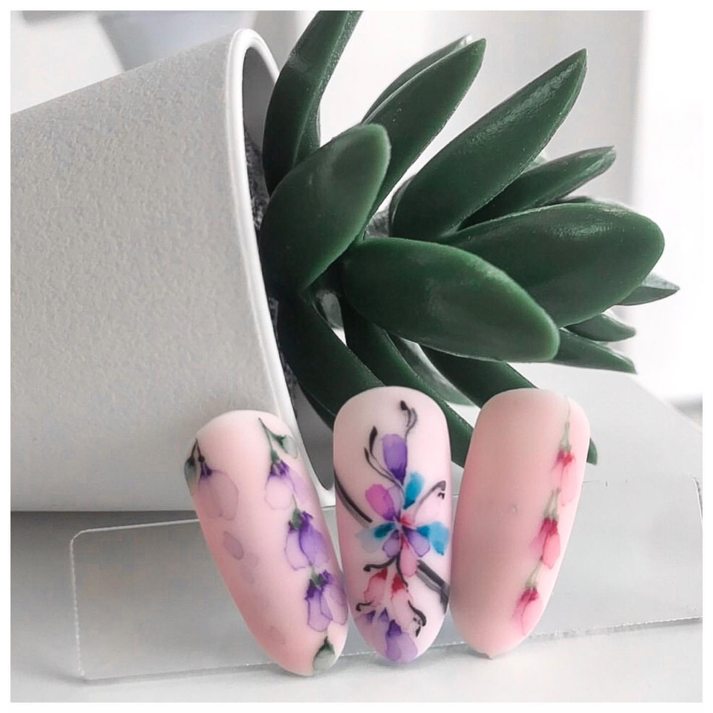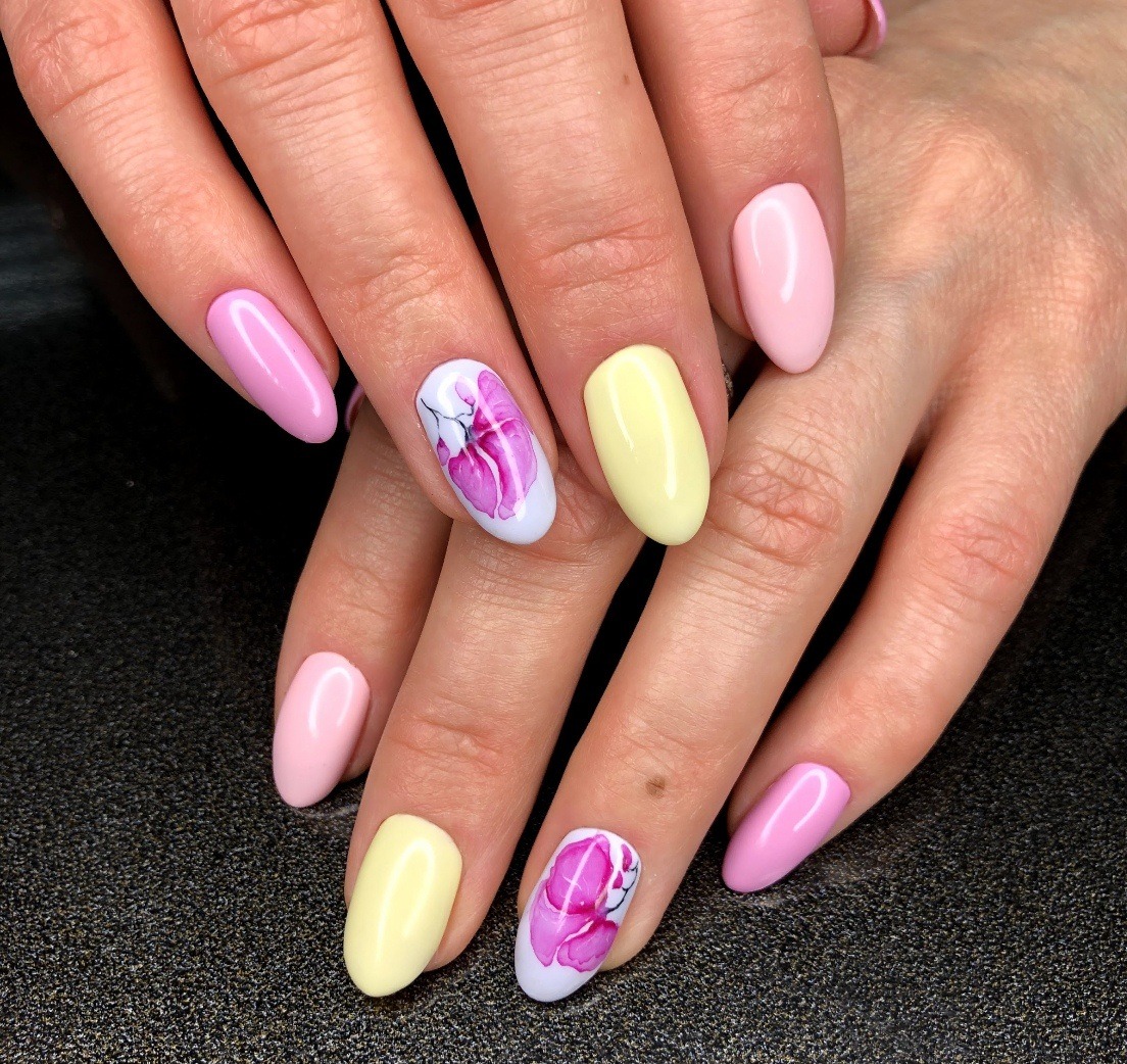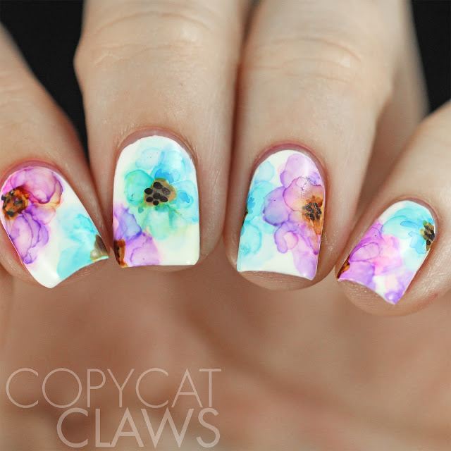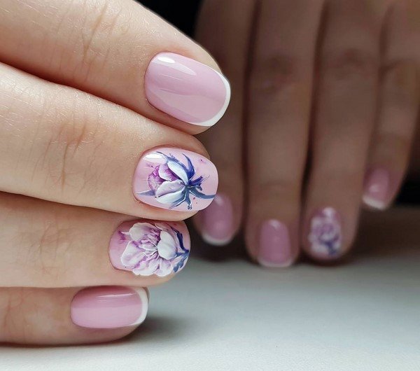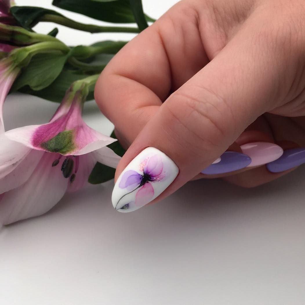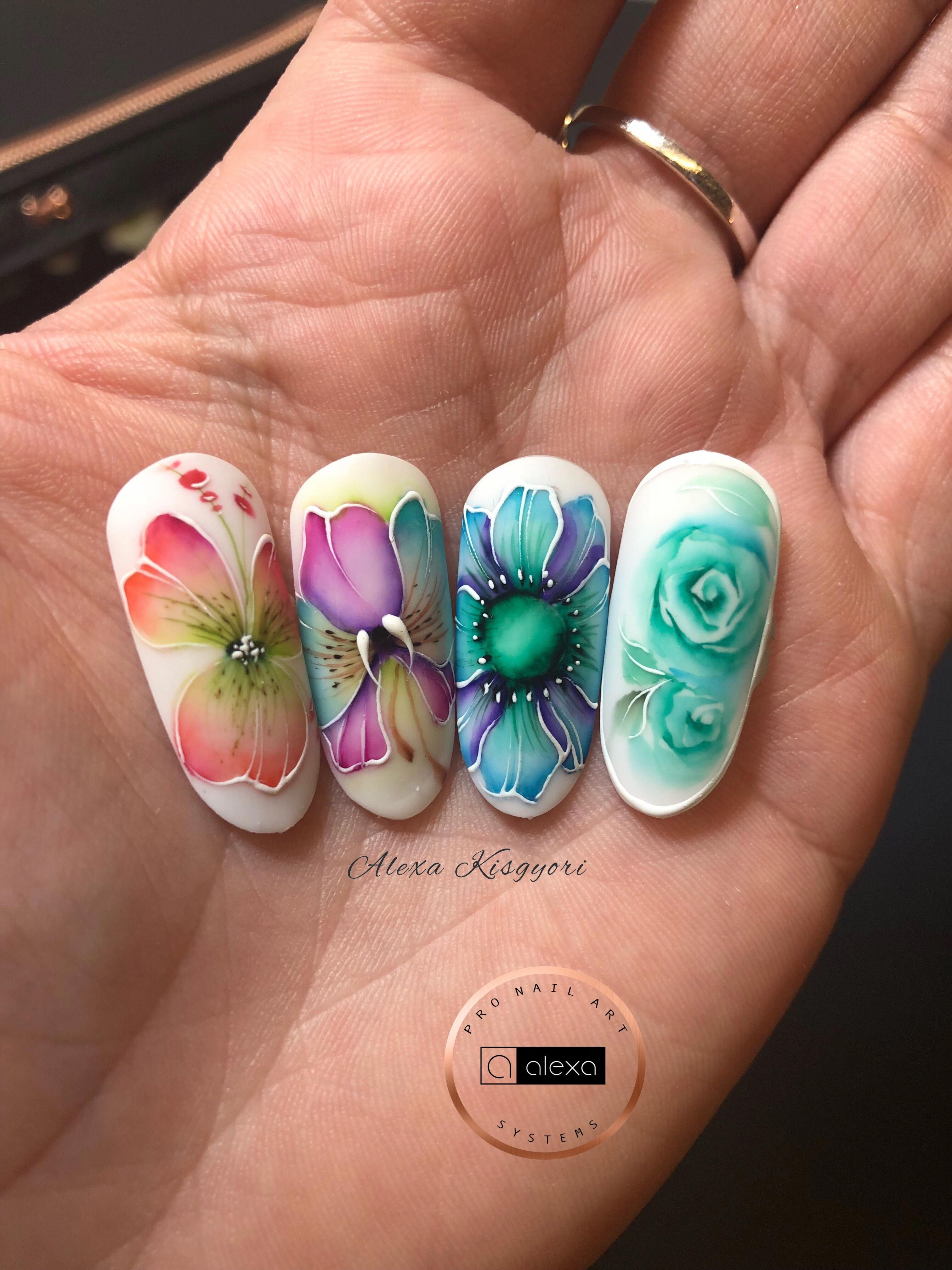 - Manucure aquarelle avec des fleurs.
