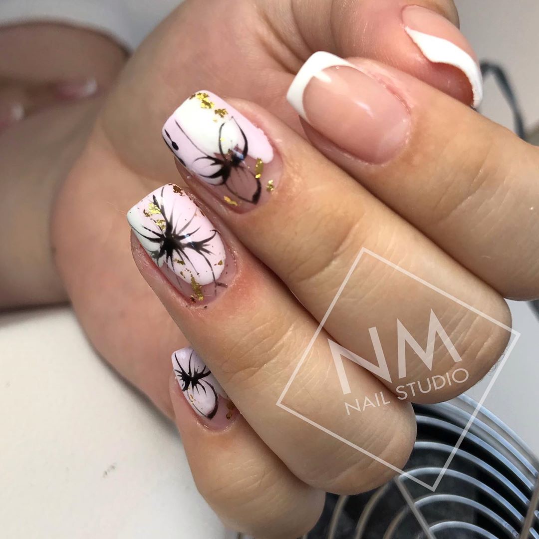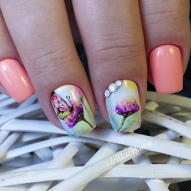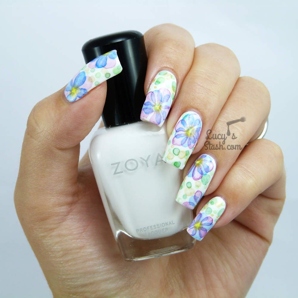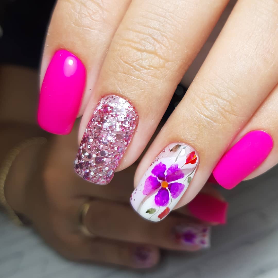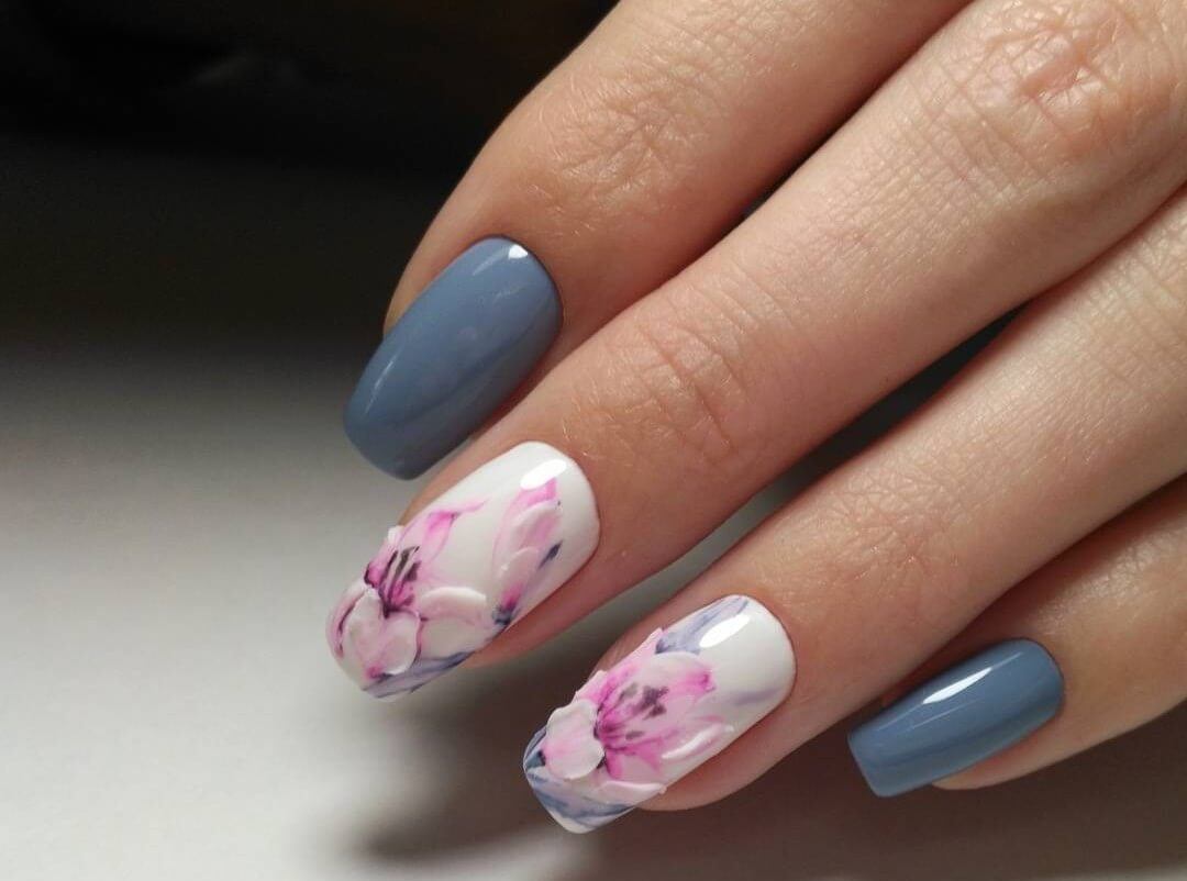 - Manucure aquarelle avec des fleurs.