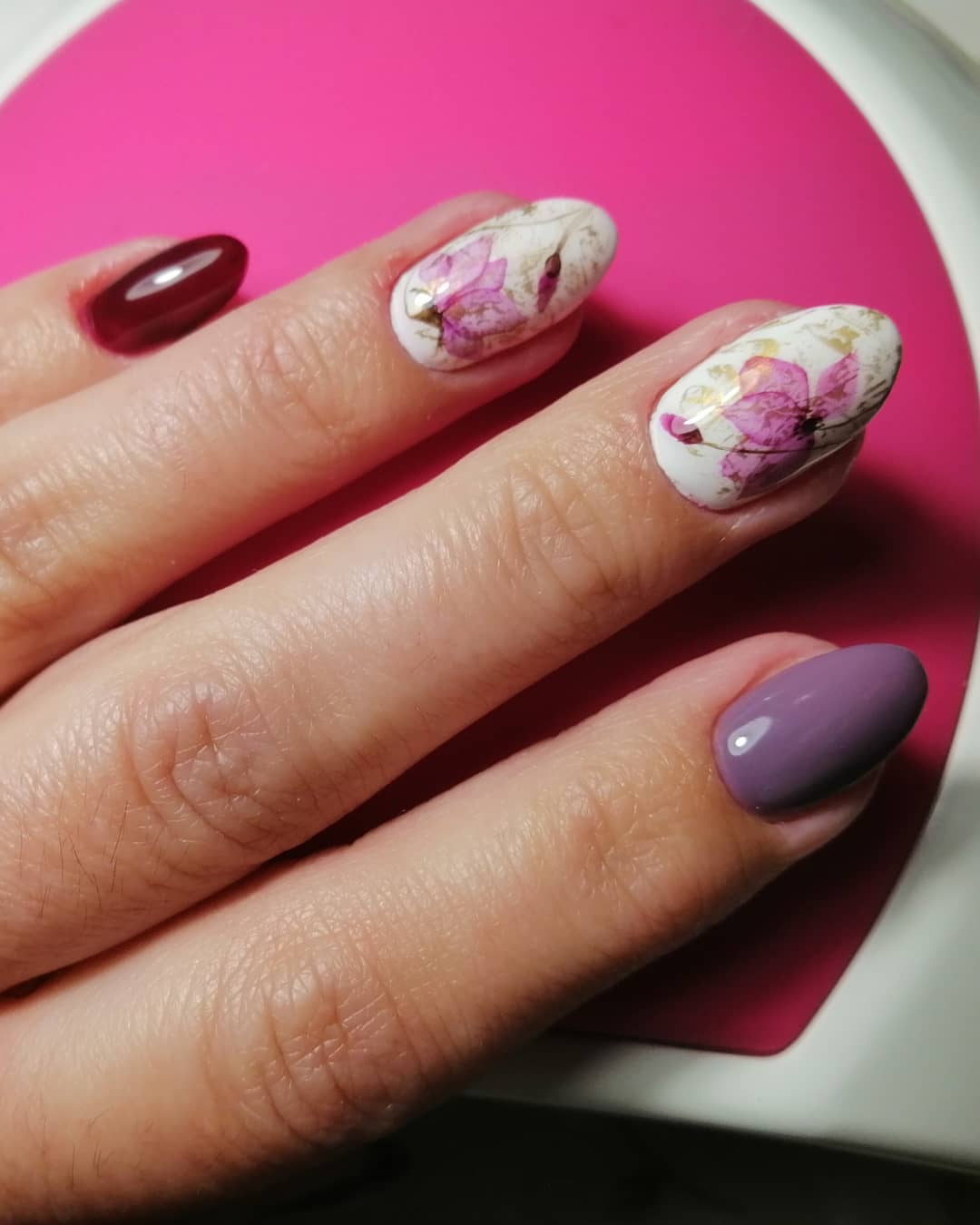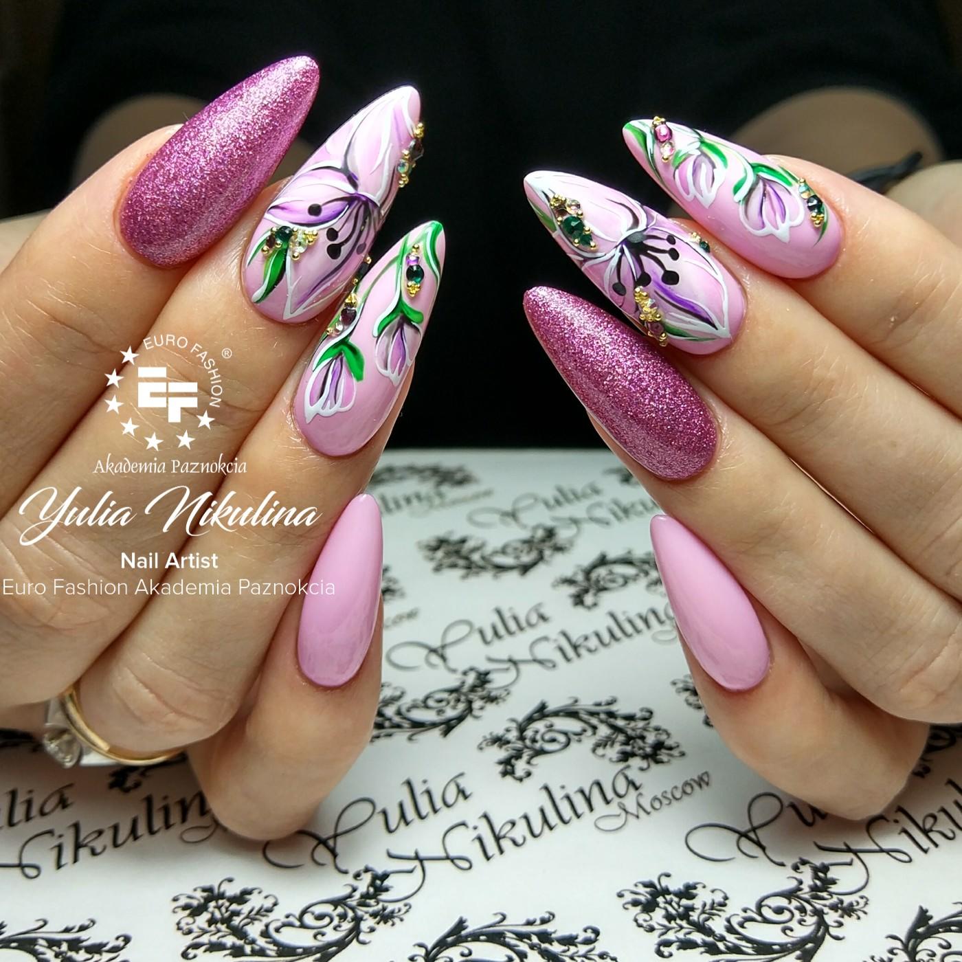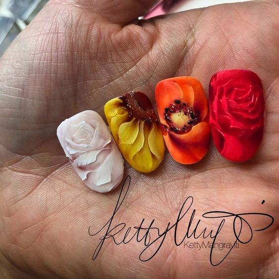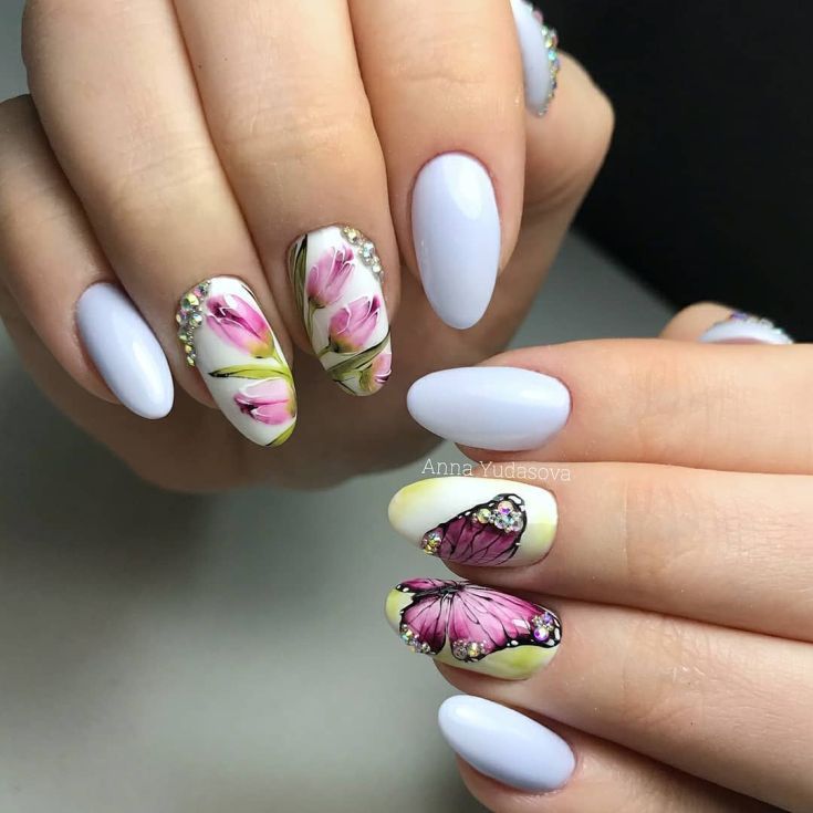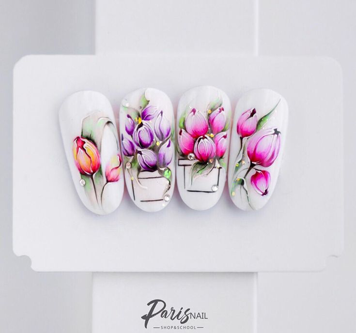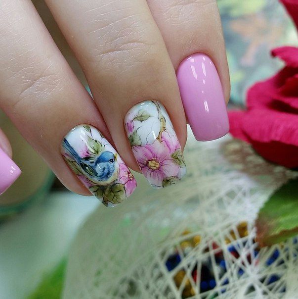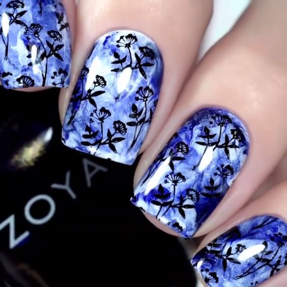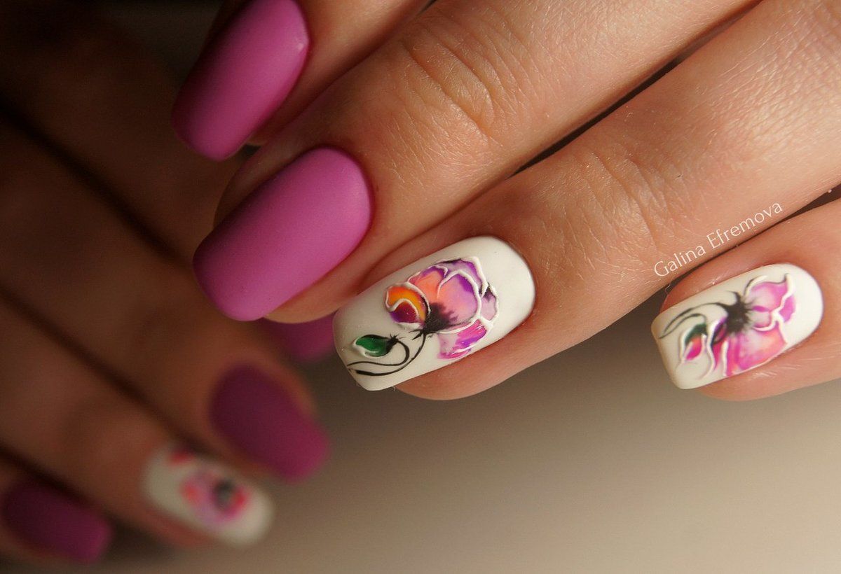 - Manucure aquarelle avec des fleurs.