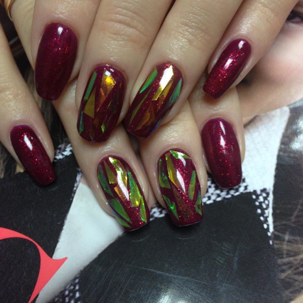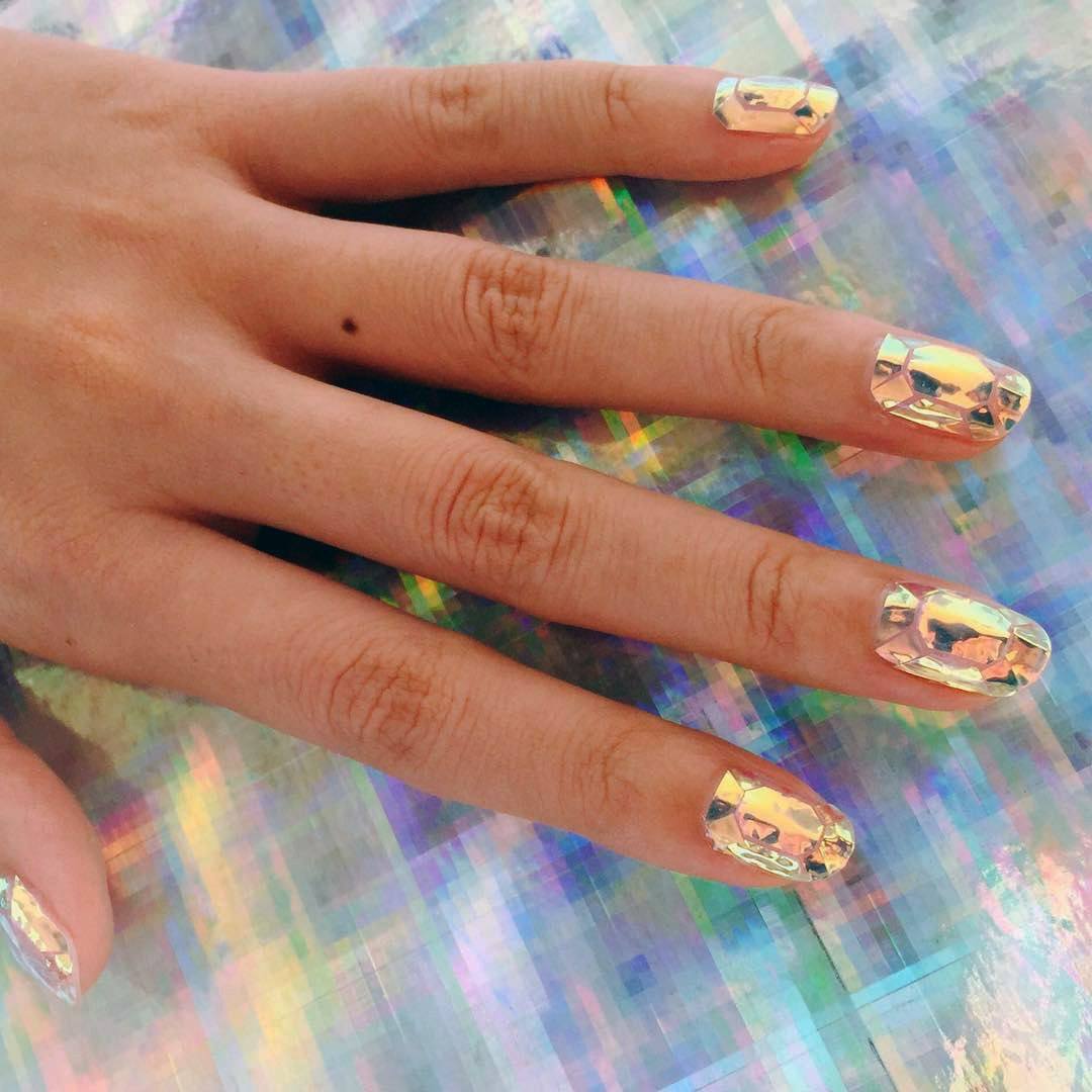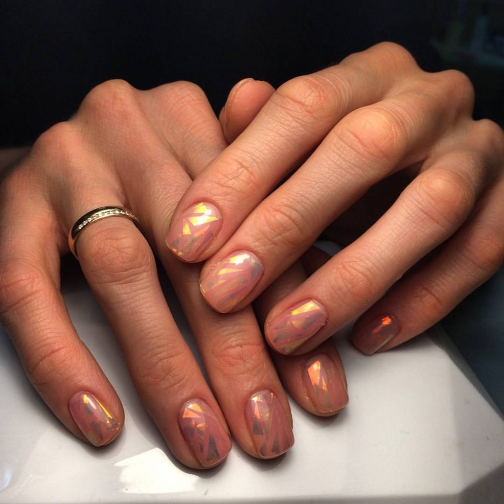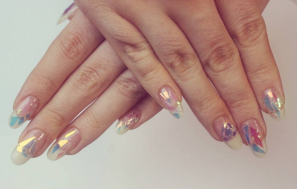 Manucure "verre brisé". Fragments d'ongle spectaculaires